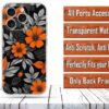 Printed Silicon Cover – Black Background With Red Flowers And Black Leaves Design D16838