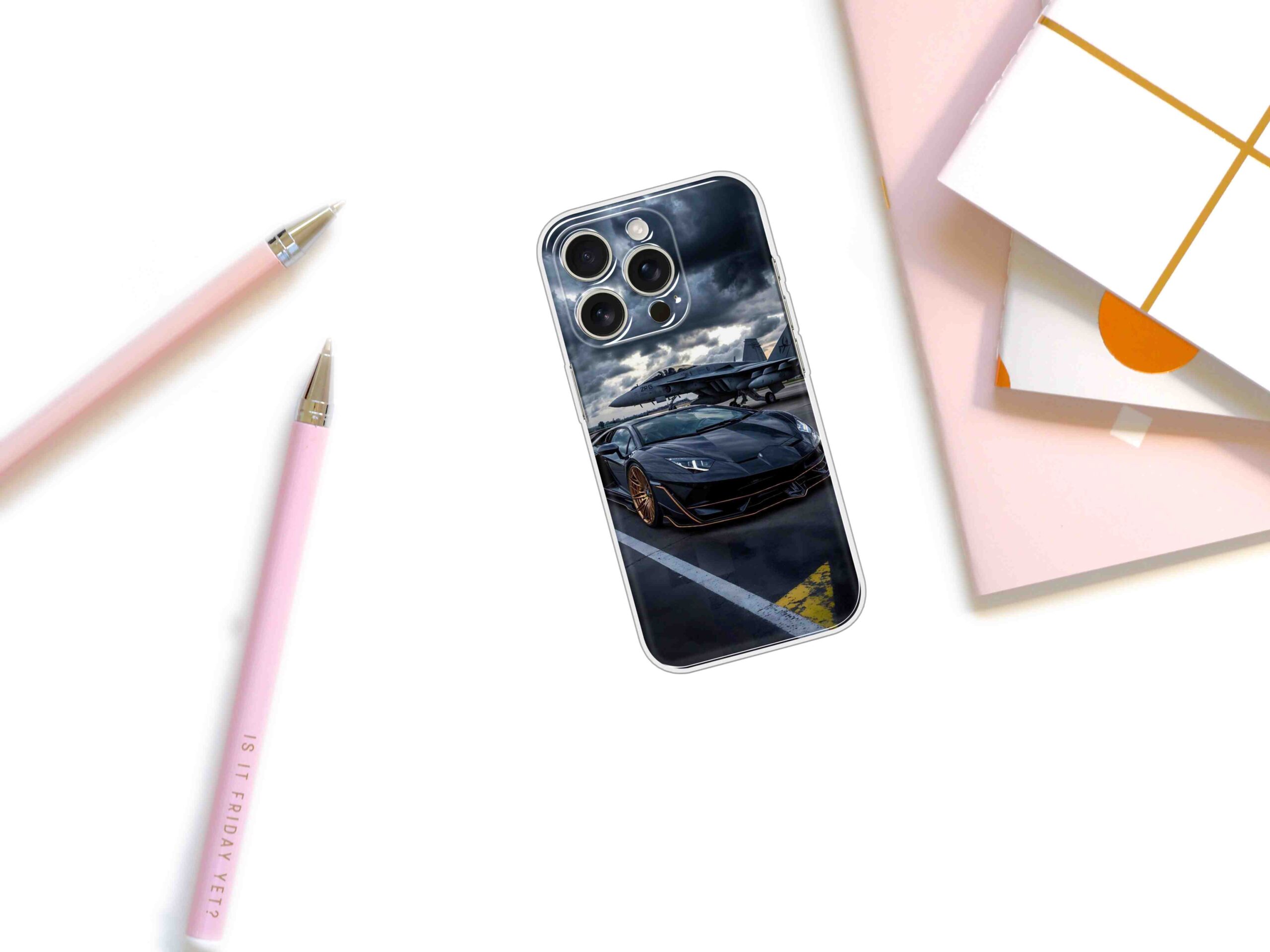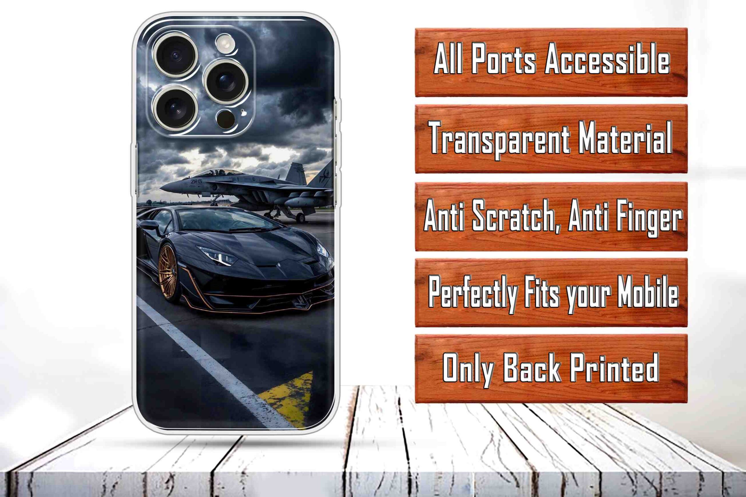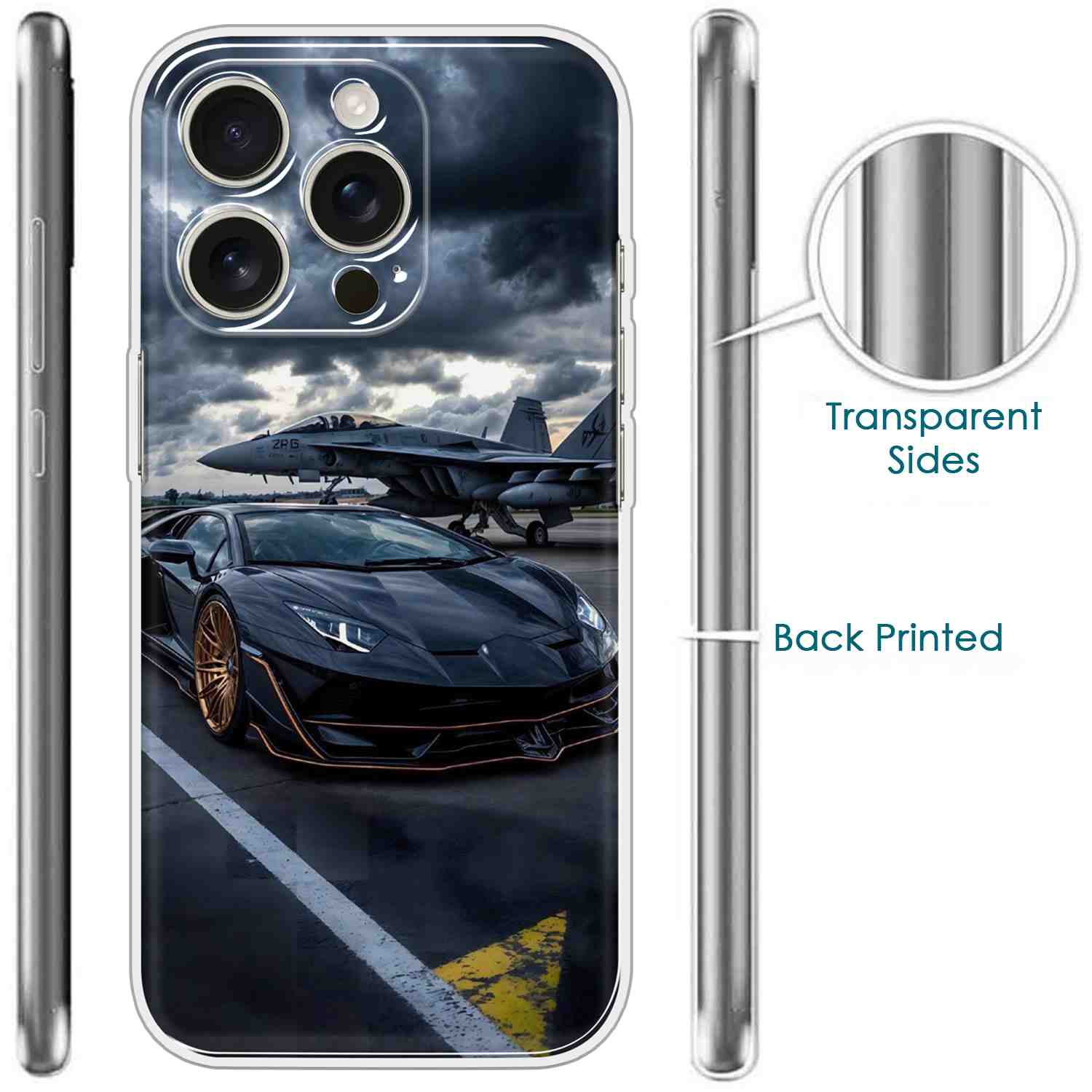 Printed Silicon Cover – Black Car With Aeroplane Design D16616