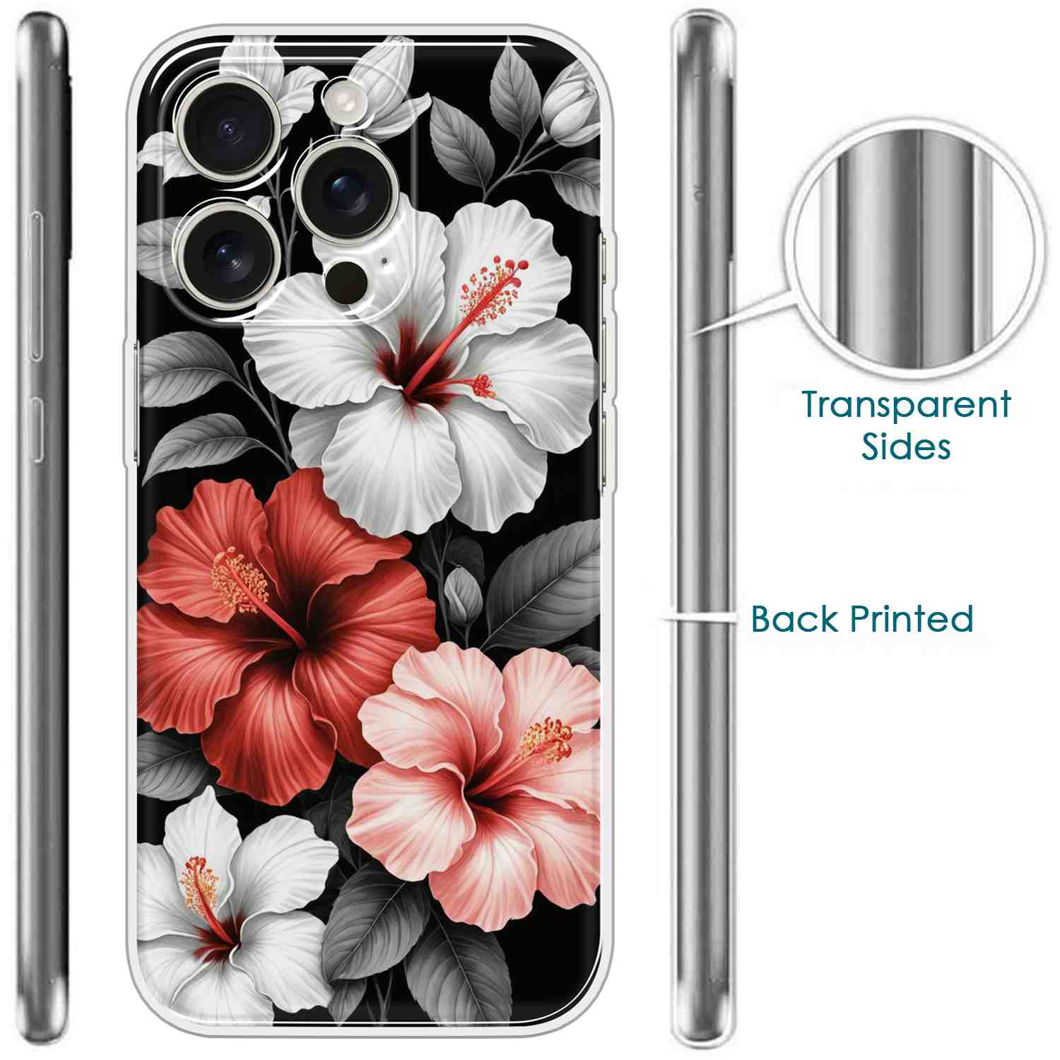 Printed Silicon Cover – Black Leaves And Colourful Floral Fllowers Design D16818