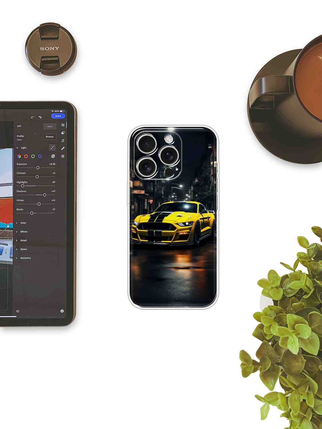 Printed Silicon Cover – Black Lines On Yellow Car Design D16772