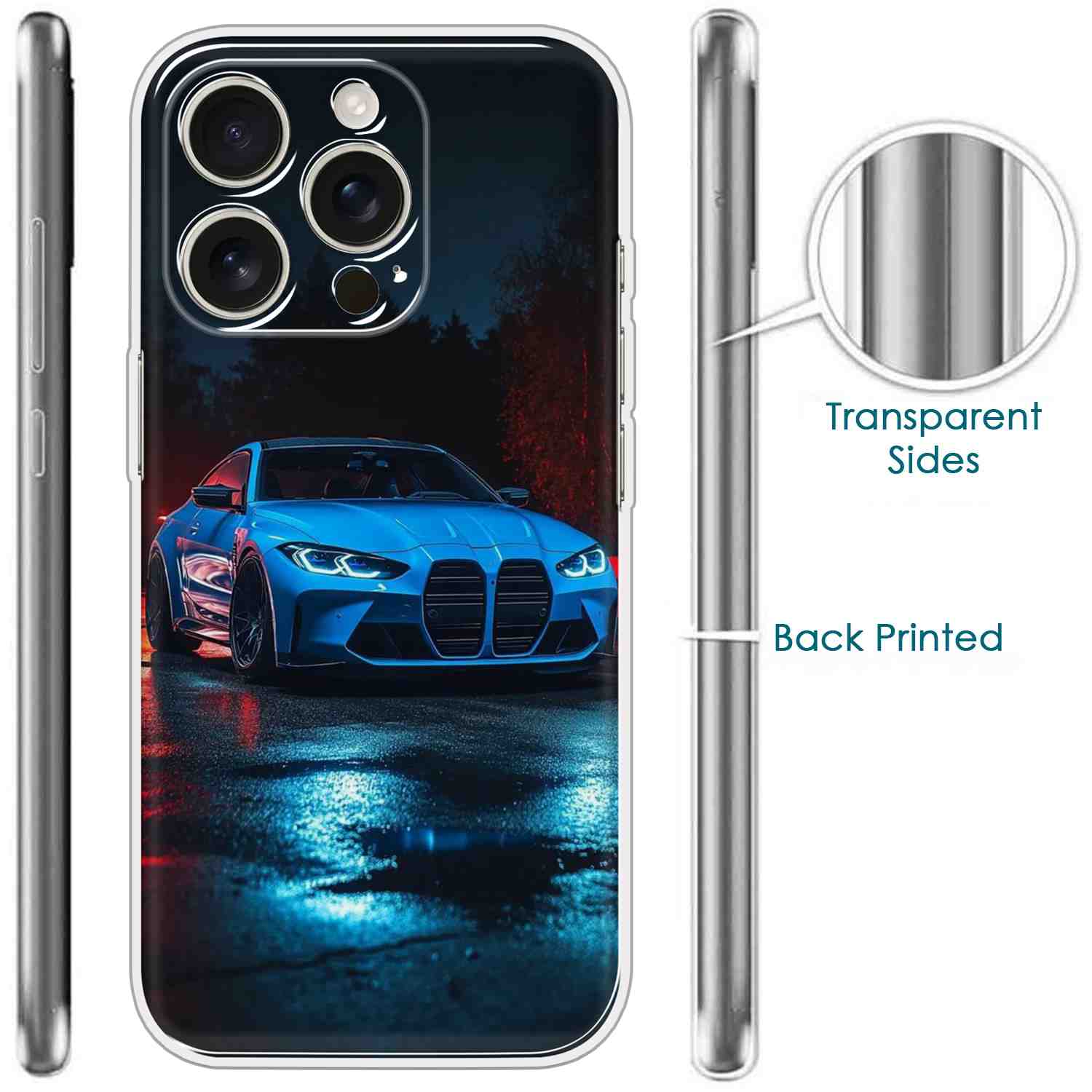 Printed Silicon Cover – Blue Car On Blue Lights Design D16746