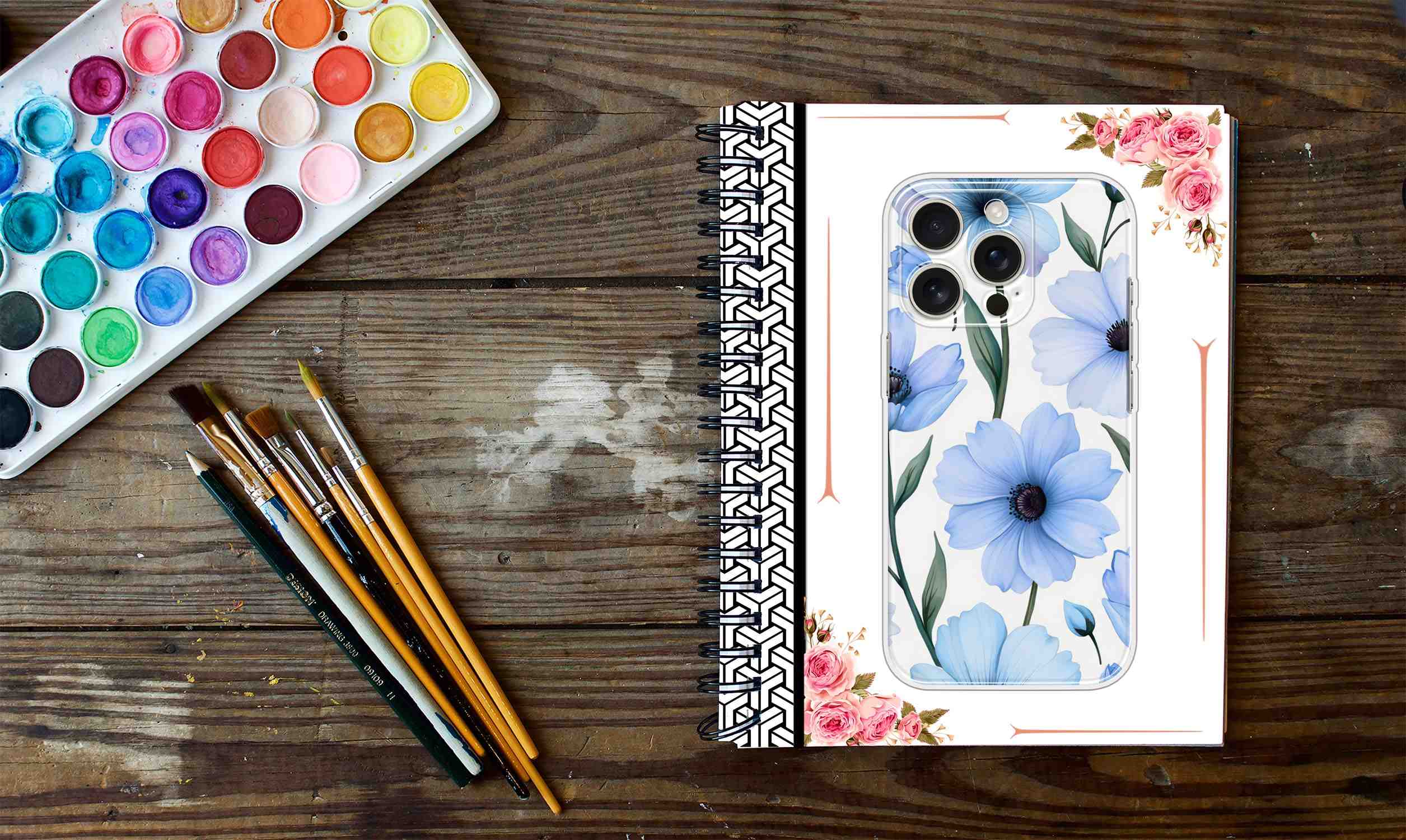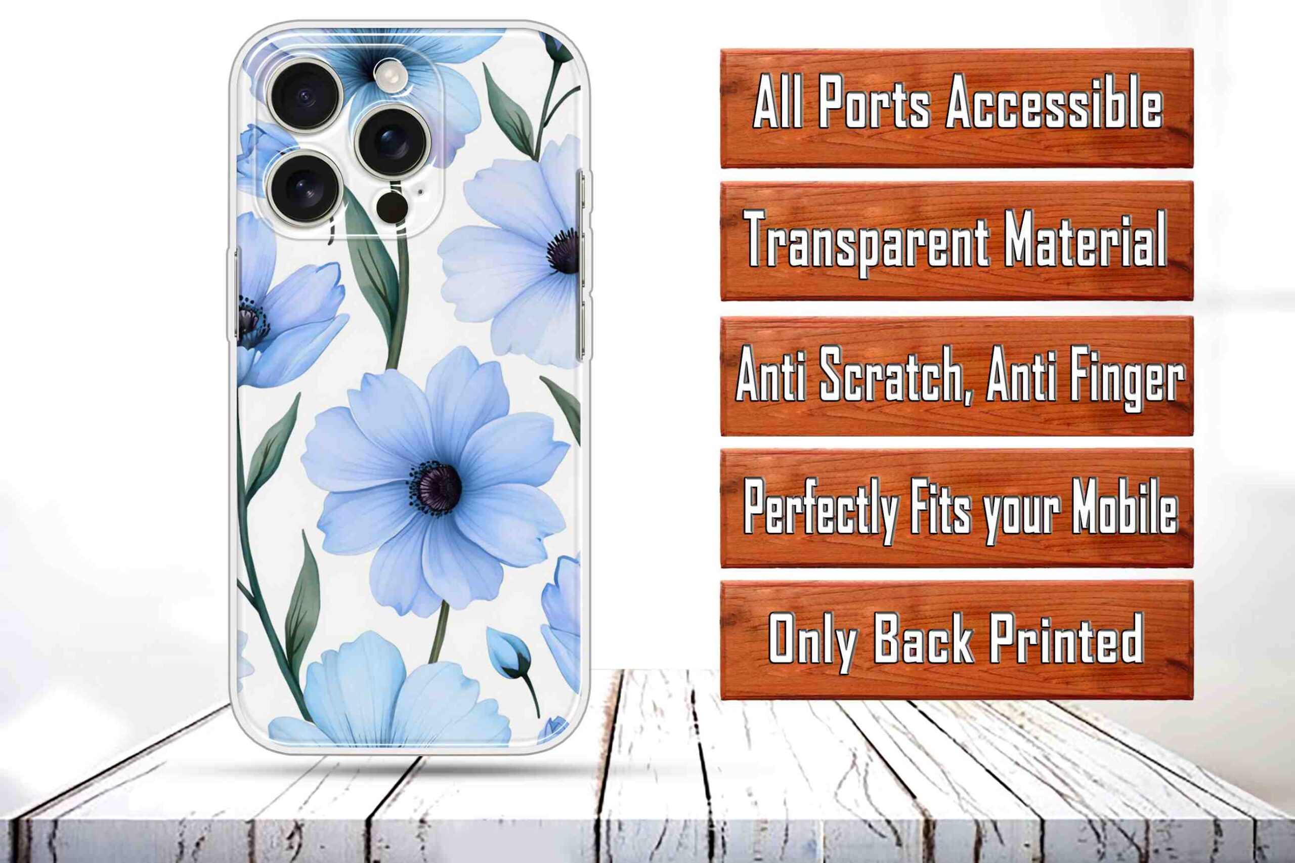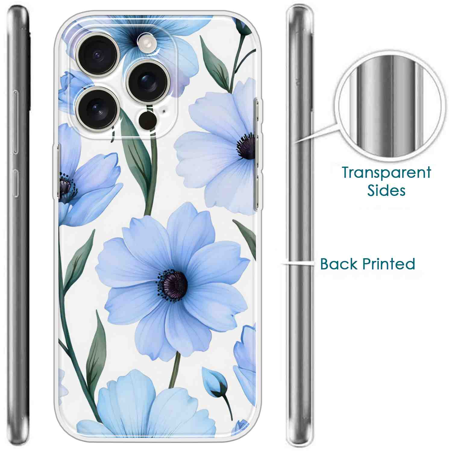 Printed Silicon Cover – Blue Floral Pattern D16690