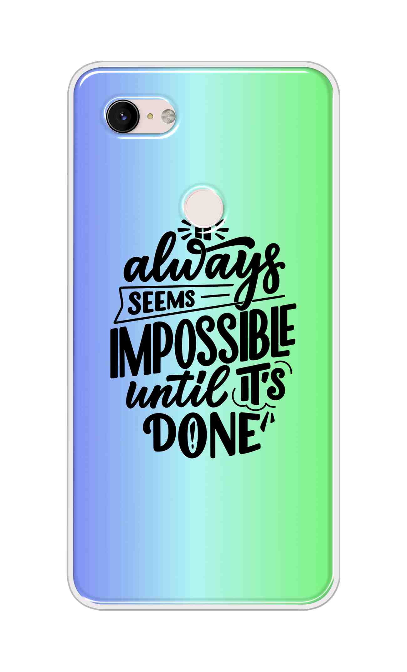 - Trendy and stylish “It Always Seems Impossible Until Its Done in Green and Blue Design” for Google Pixel 3 XL
