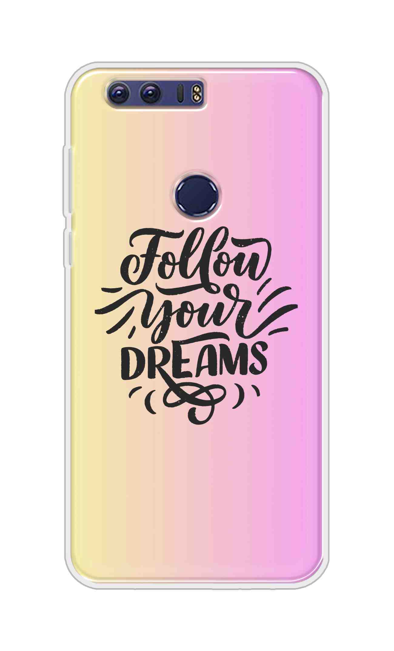 - Trendy and stylish “Follow Your Dreams In Pink And Yellow Design” for Huawei Honor 8
