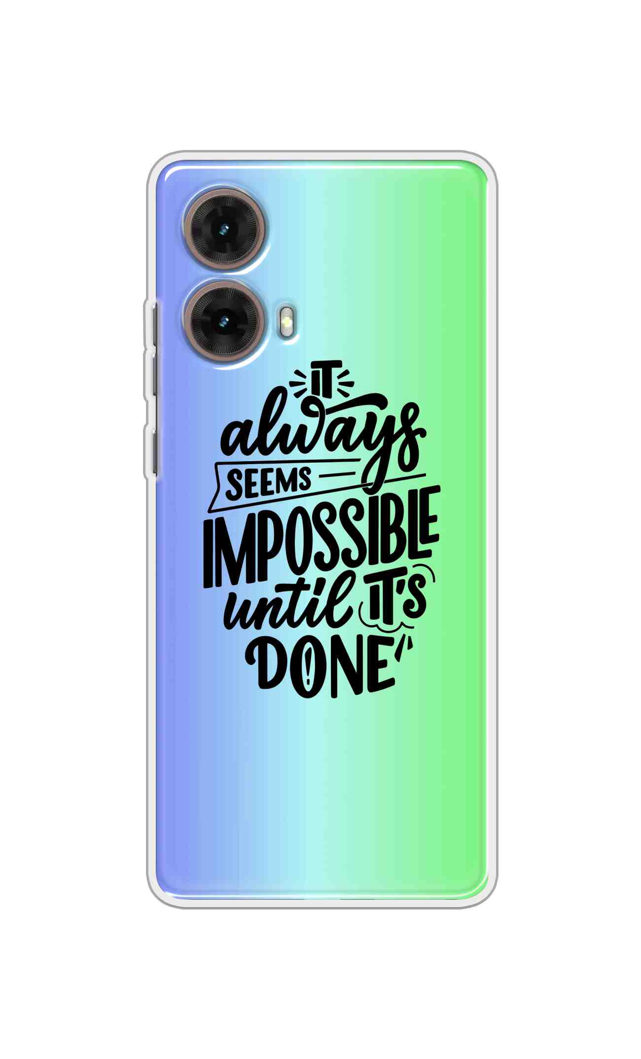 - Trendy and stylish “It Always Seems Impossible Until Its Done in Green and Blue Design” for Motorola Moto Moto G85