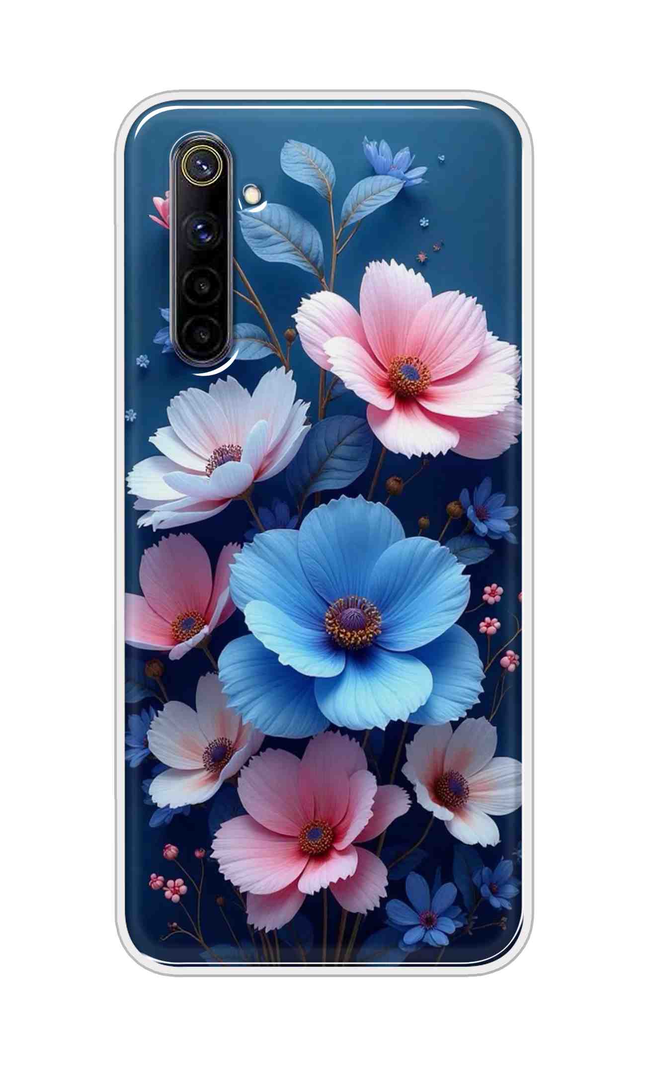 - Trendy and stylish “Blue and Pink Flowers Design” for Oppo Realme 6i