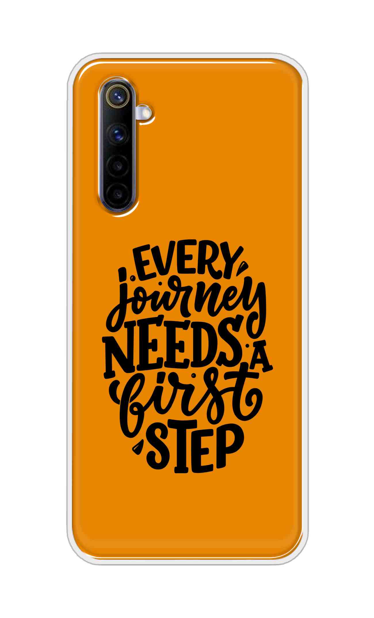 - Trendy and stylish “Every Journey Needs a First Step in Orange Design” for Realme 6