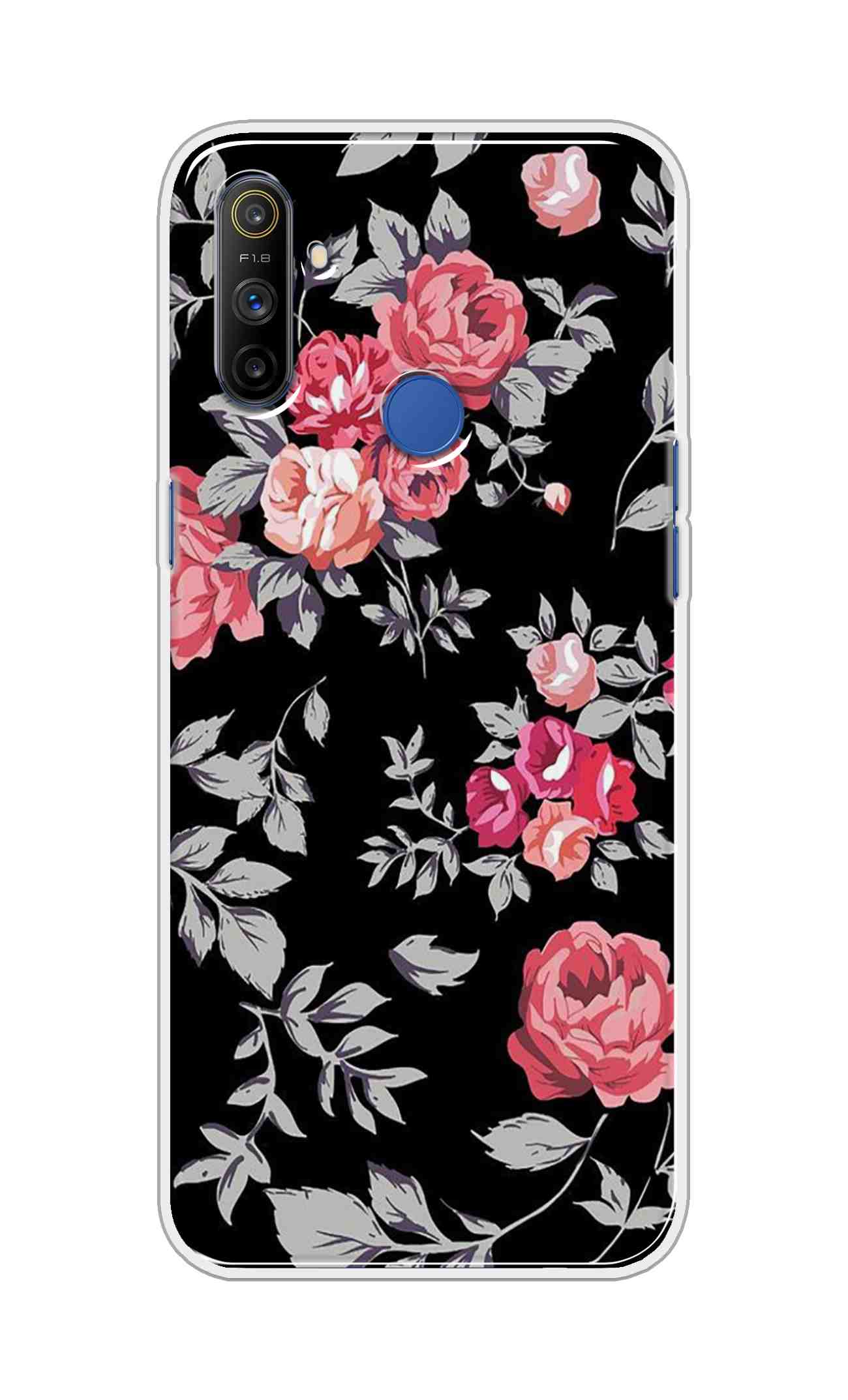 - Trendy and stylish “Pink Flowers and Grey Leaves Design” for Realme Narzo 10A