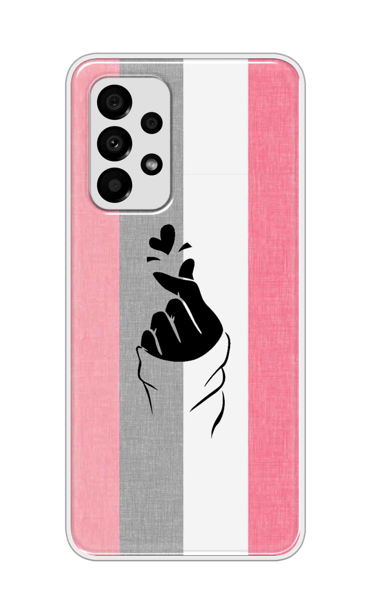 - Trendy and stylish “Pink and Grey Korean Heart Design” for Samsung Galaxy A73
