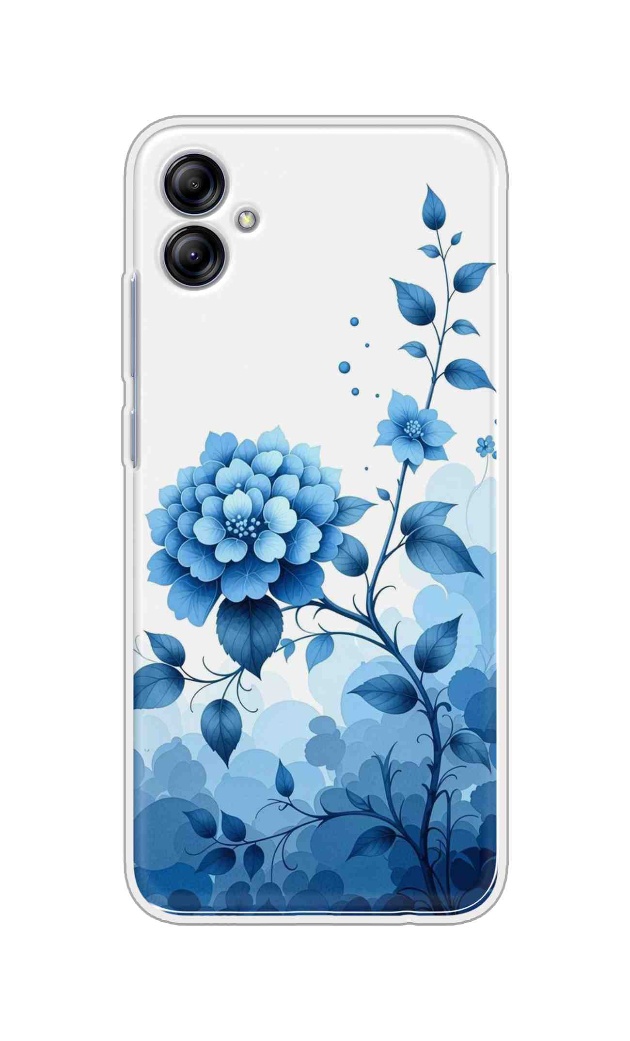 - Trendy and stylish “Blue Flowers in White Design” for Samsung Galaxy M04