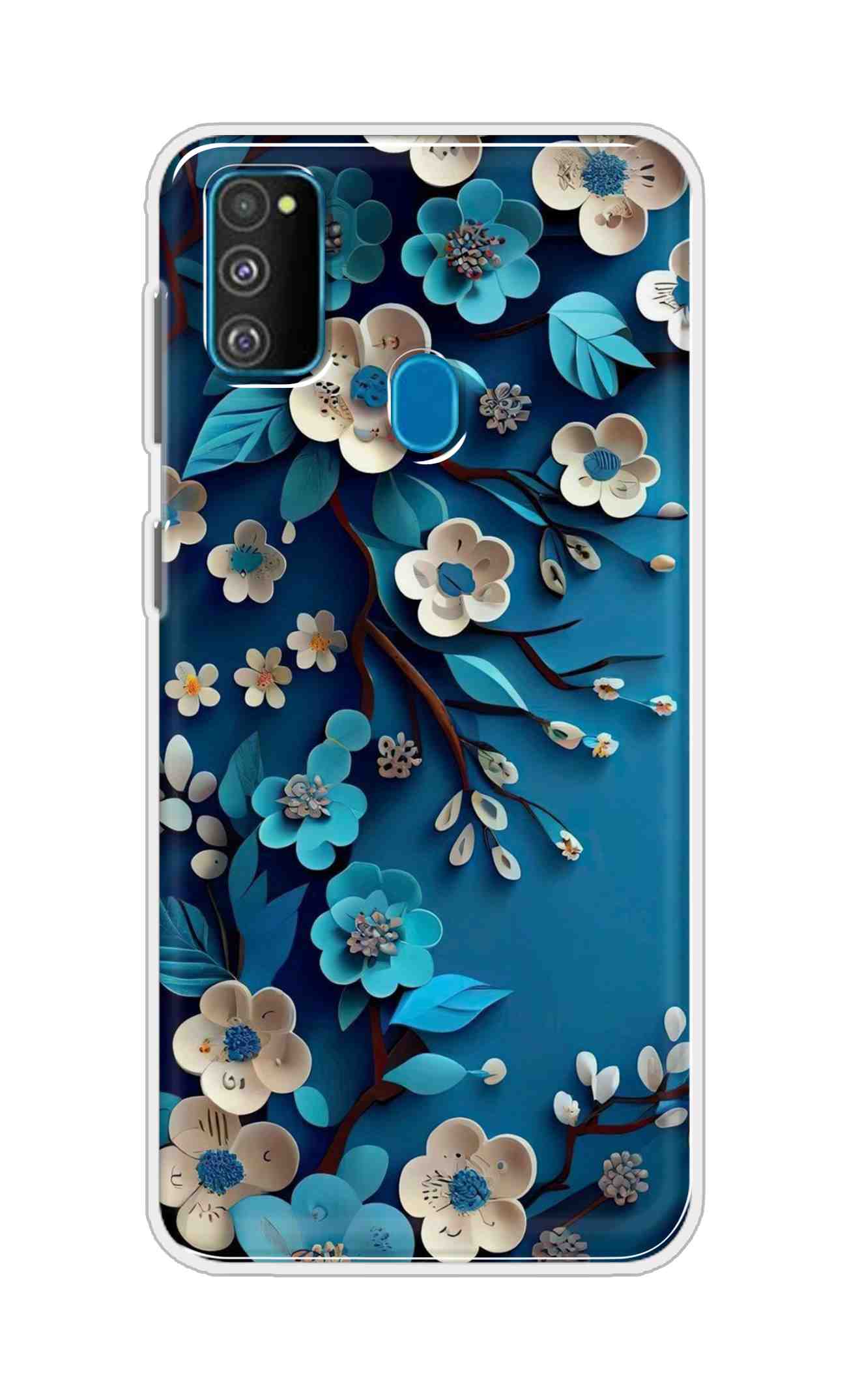 Coberta Back Cover For Samsung Galaxy M30s Back Cover Stylish Case – Blue and White Flowers Design D16551
