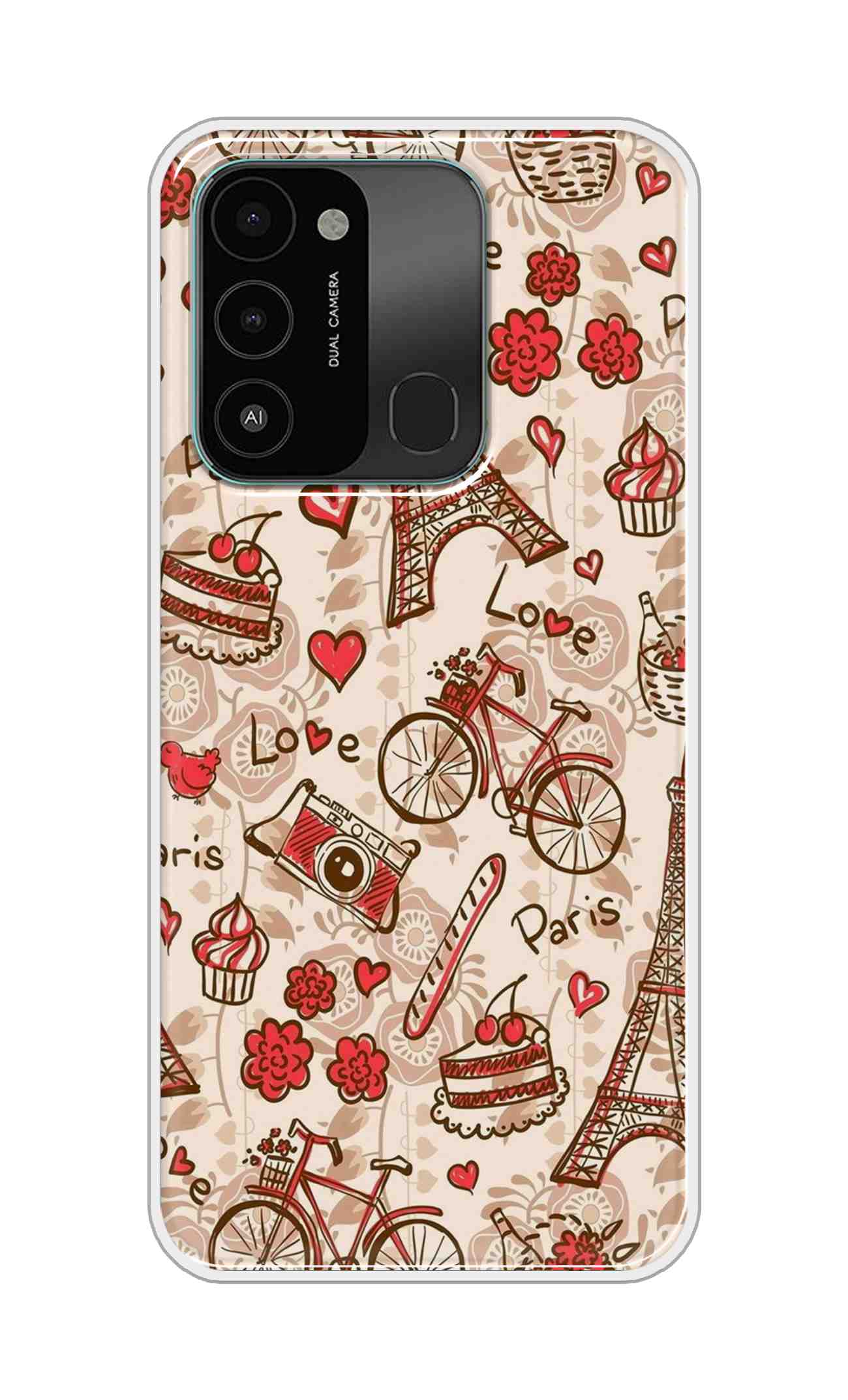 - Trendy and stylish “Paris and Love Text Pattern” for Tecno Spark Go 2022