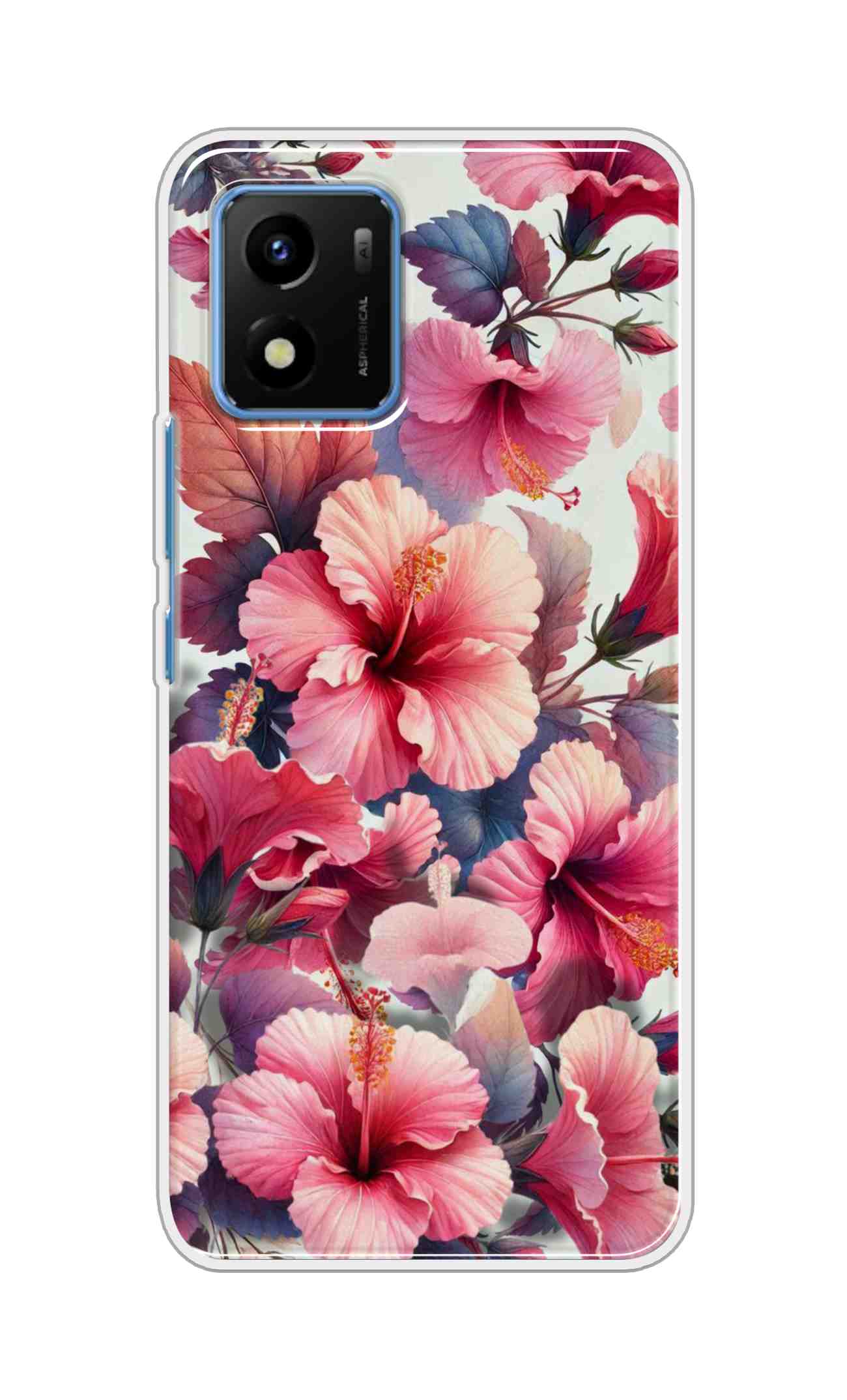 Coberta Back Cover For Vivo Y01 Back Cover Stylish Case – Pink Leaves and Flowers Design D16525