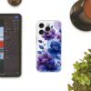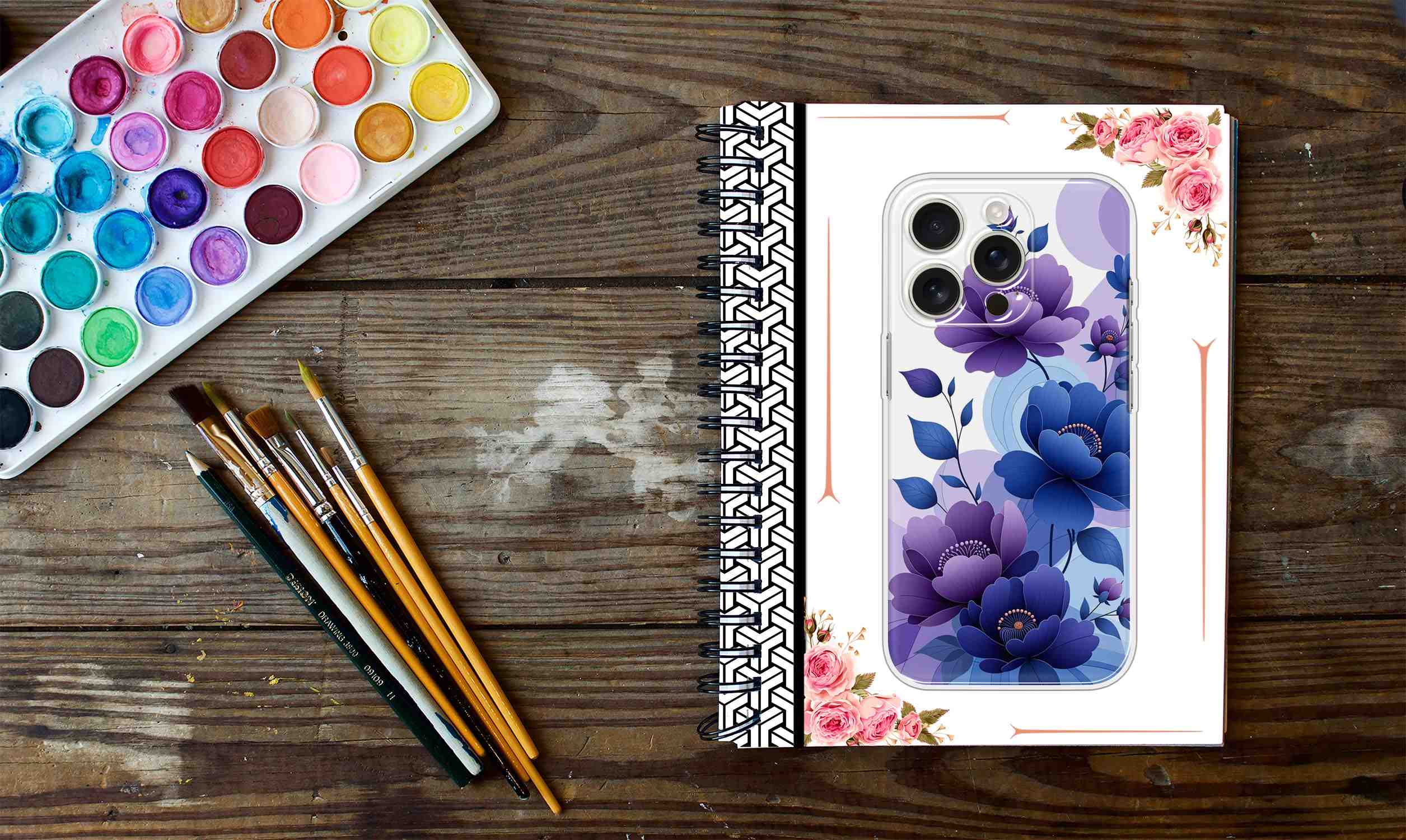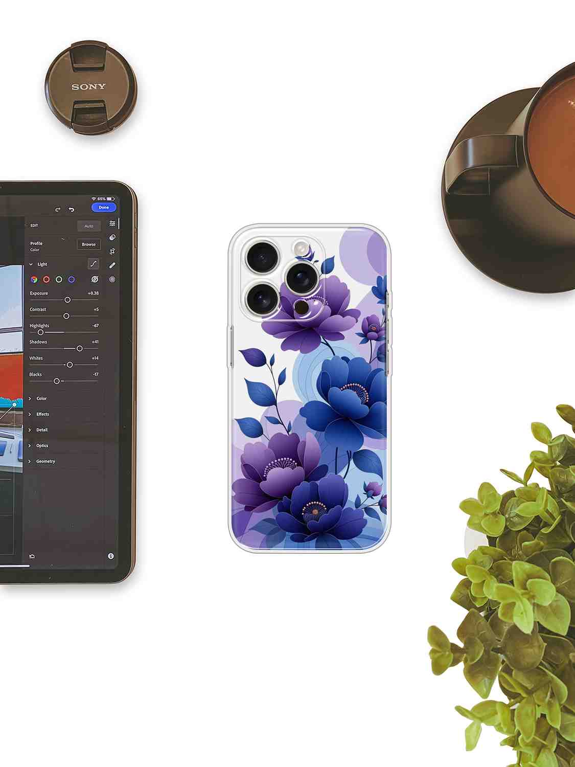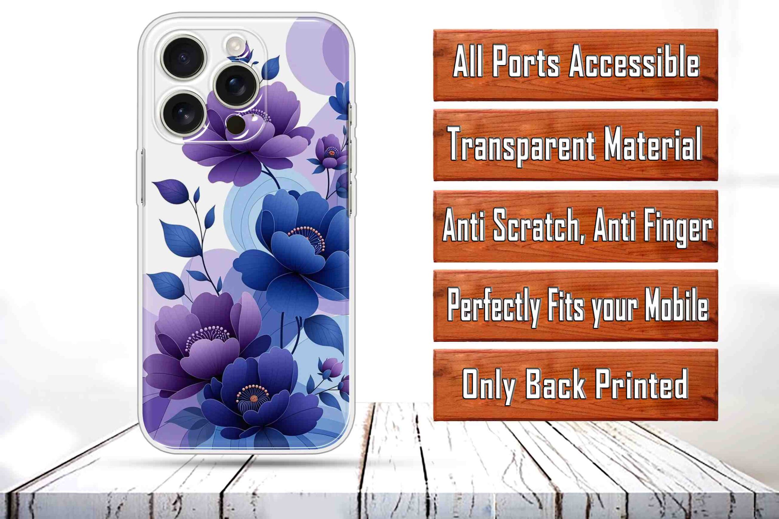 Printed Silicon Cover – Dark Purple Blue Flowers Design D16625
