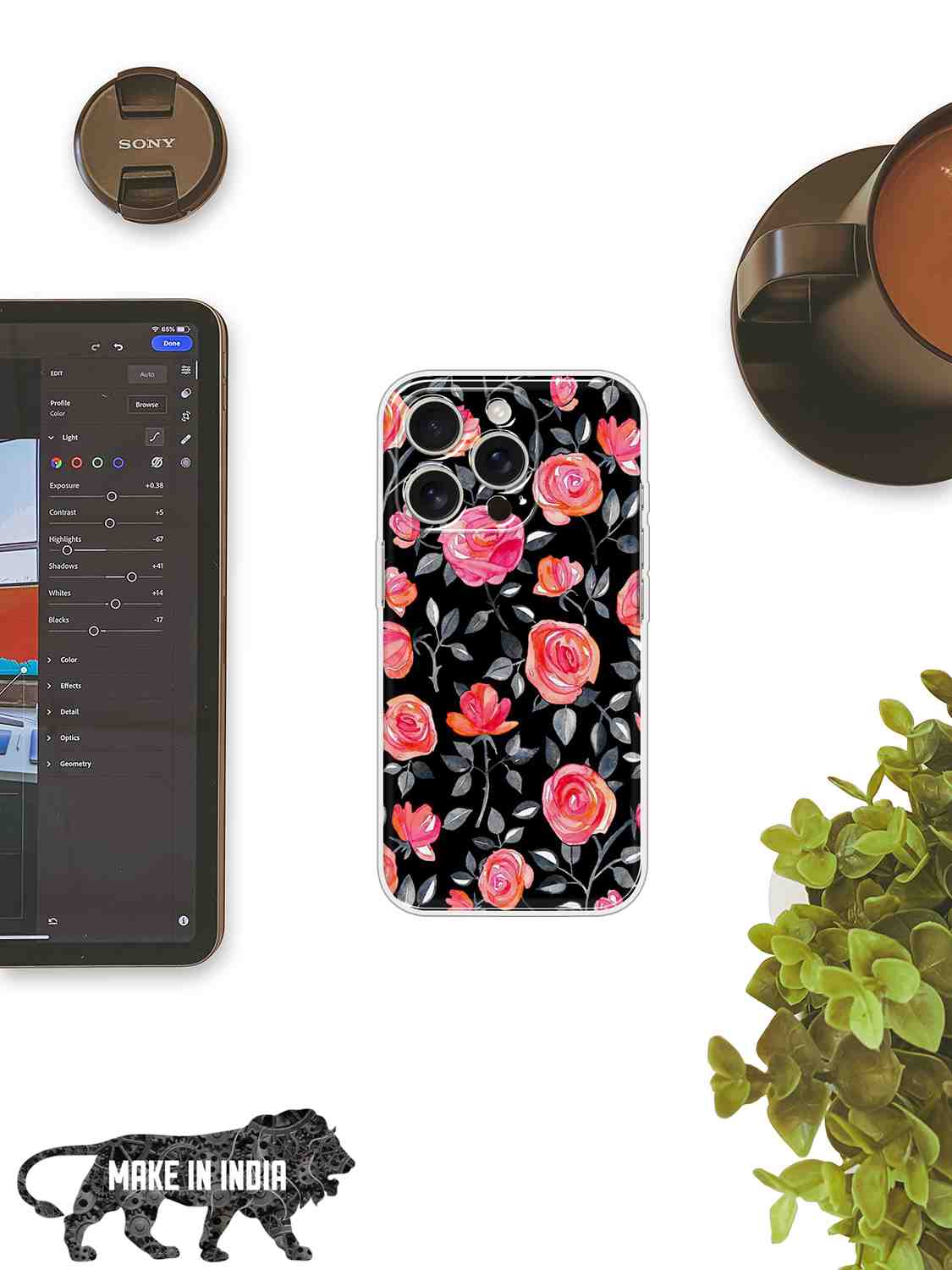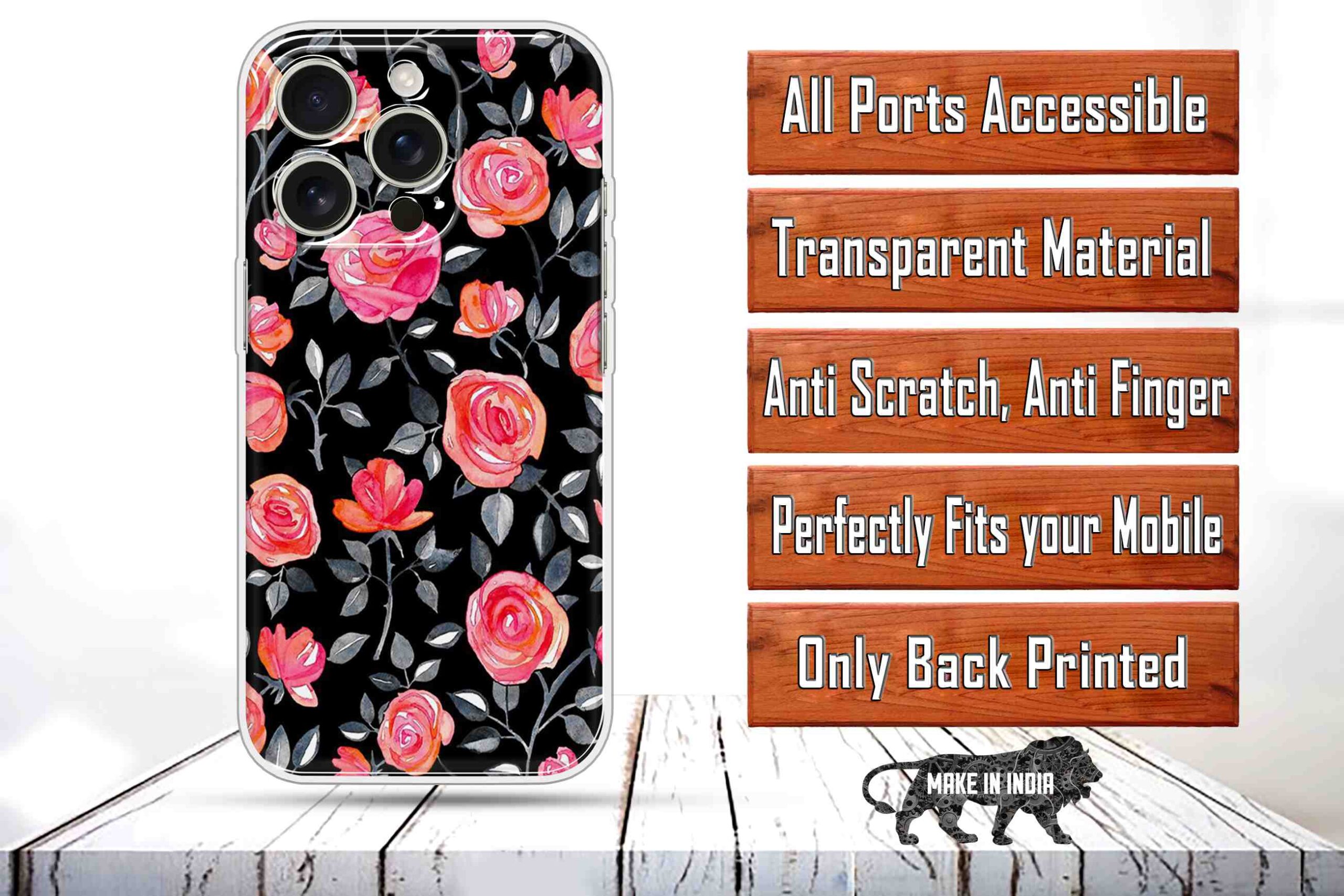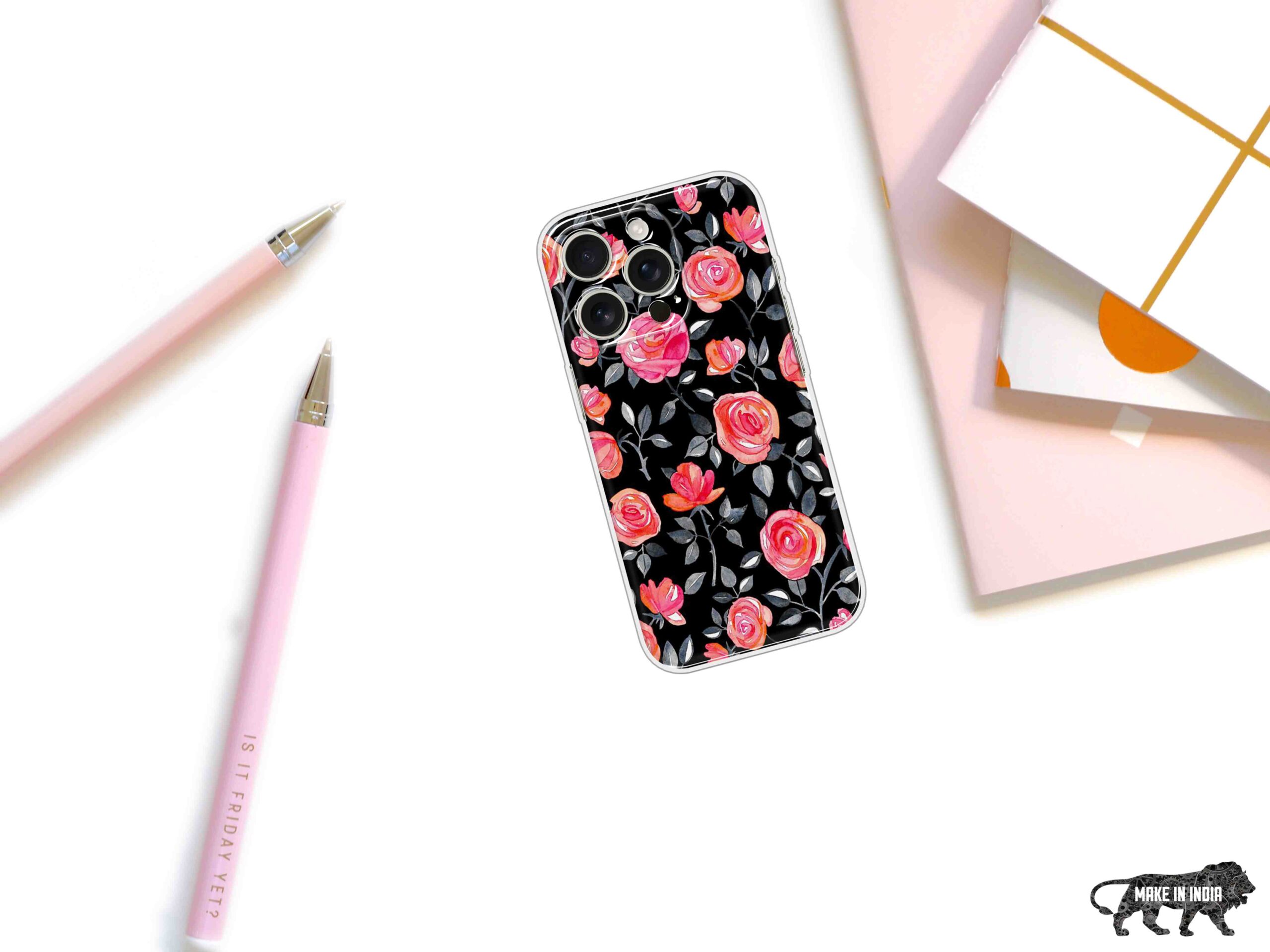 Printed Silicon Cover – Flowers And Black Leaves Design D11729