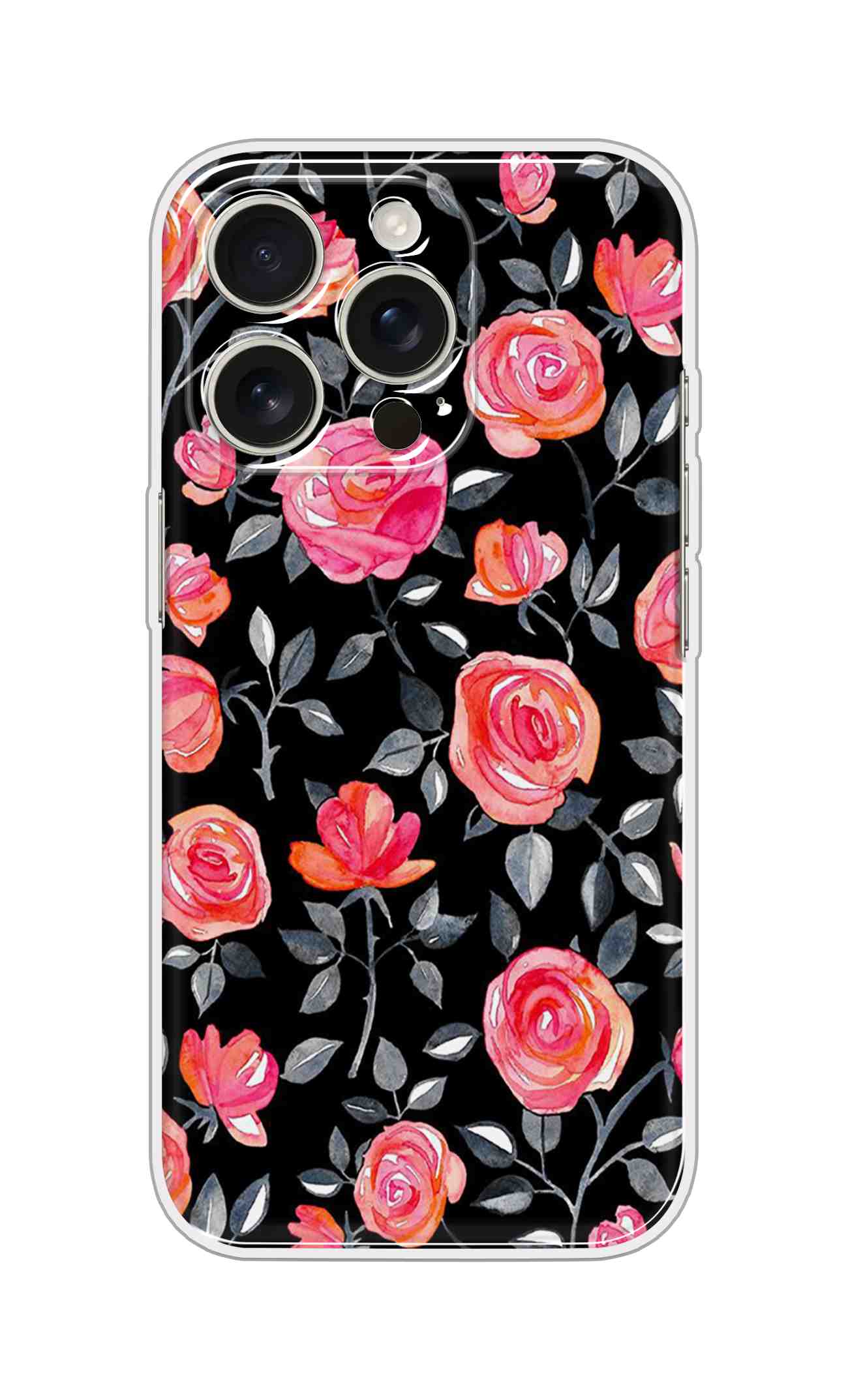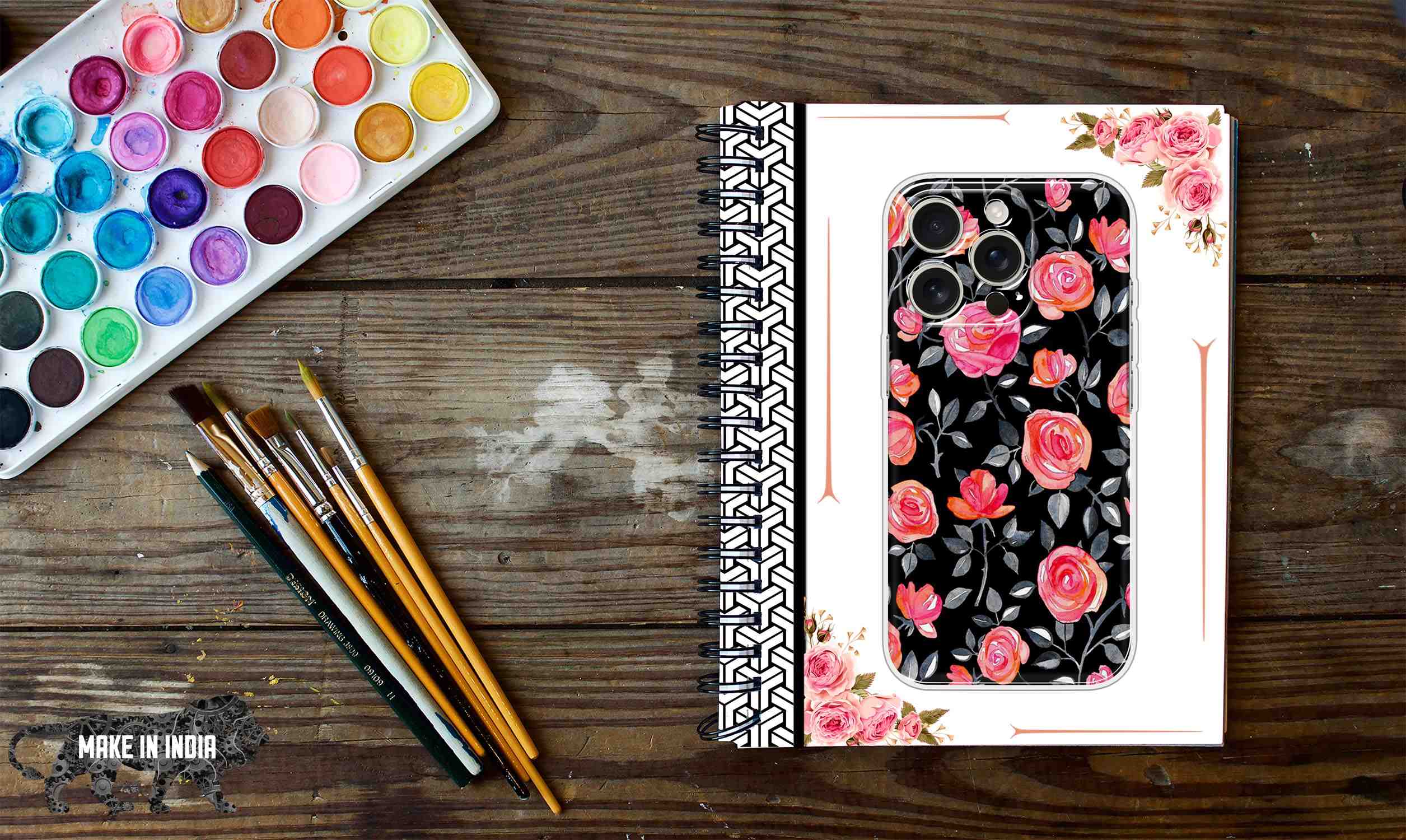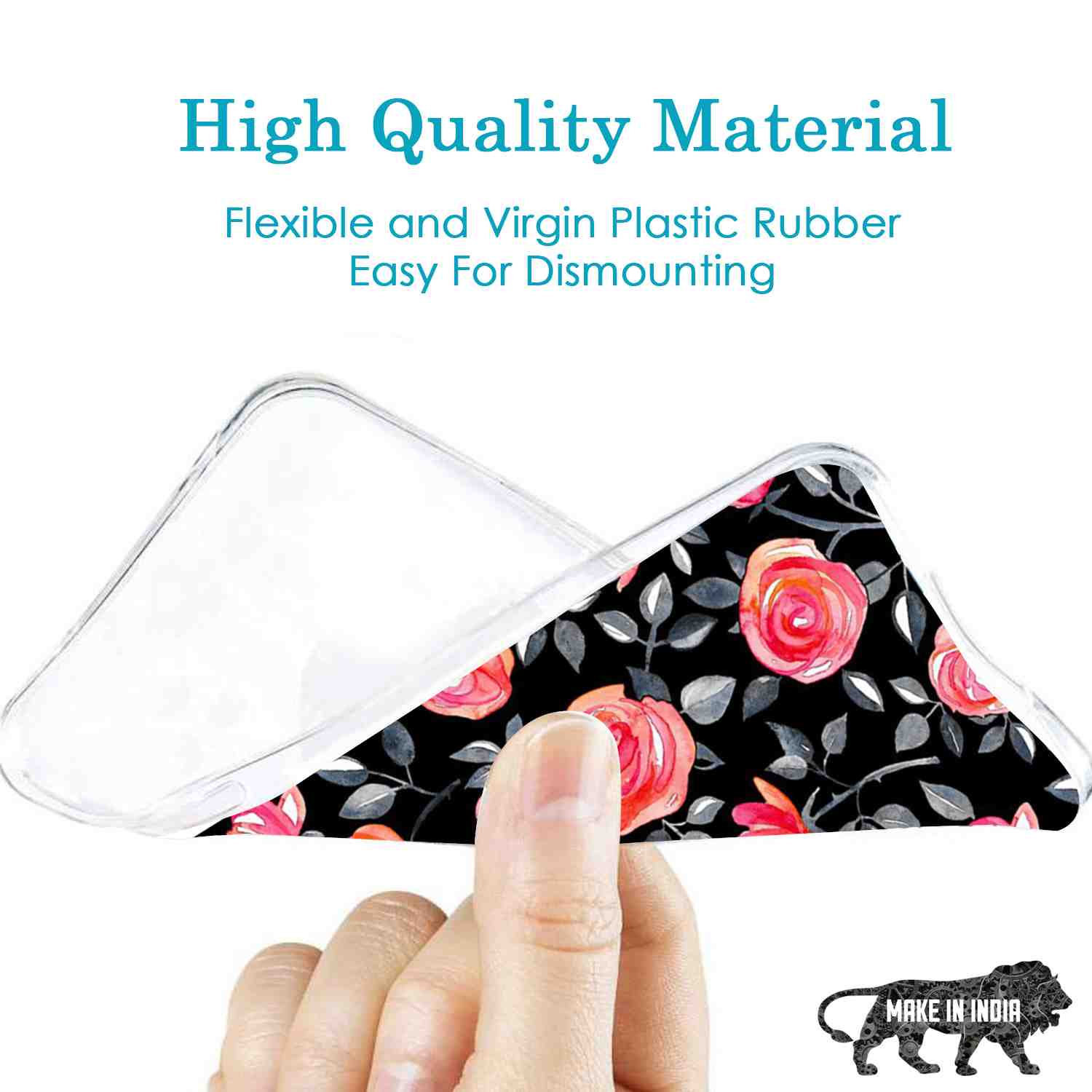 Printed Silicon Cover – Flowers And Black Leaves Design D11729