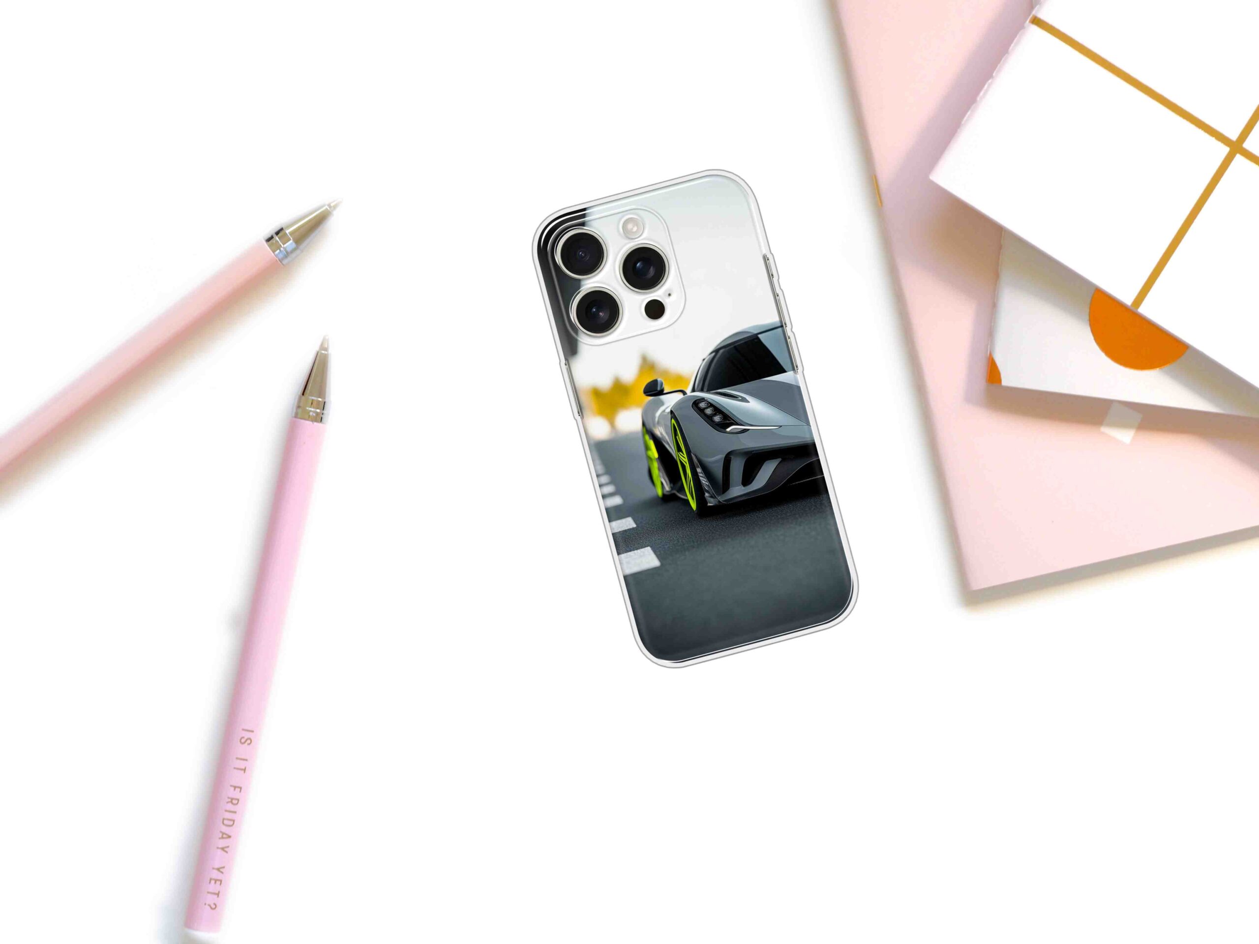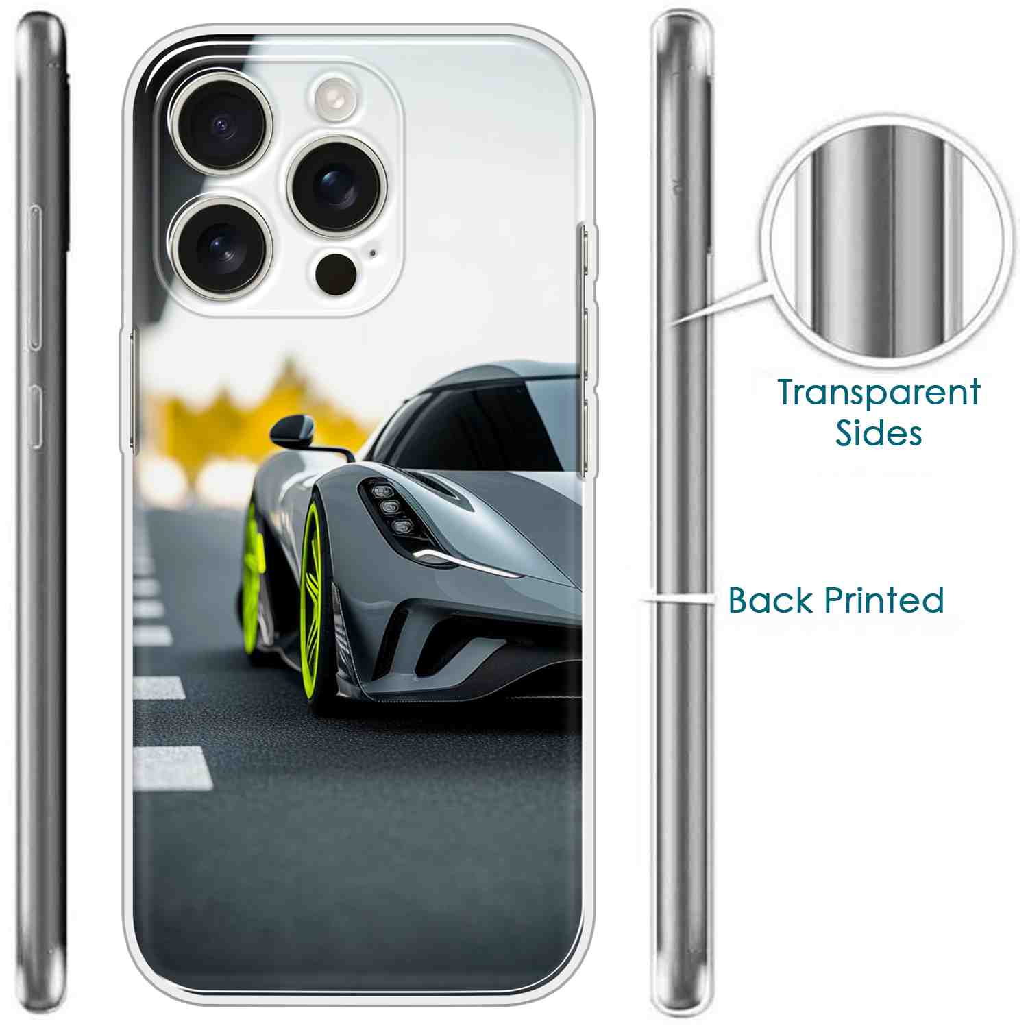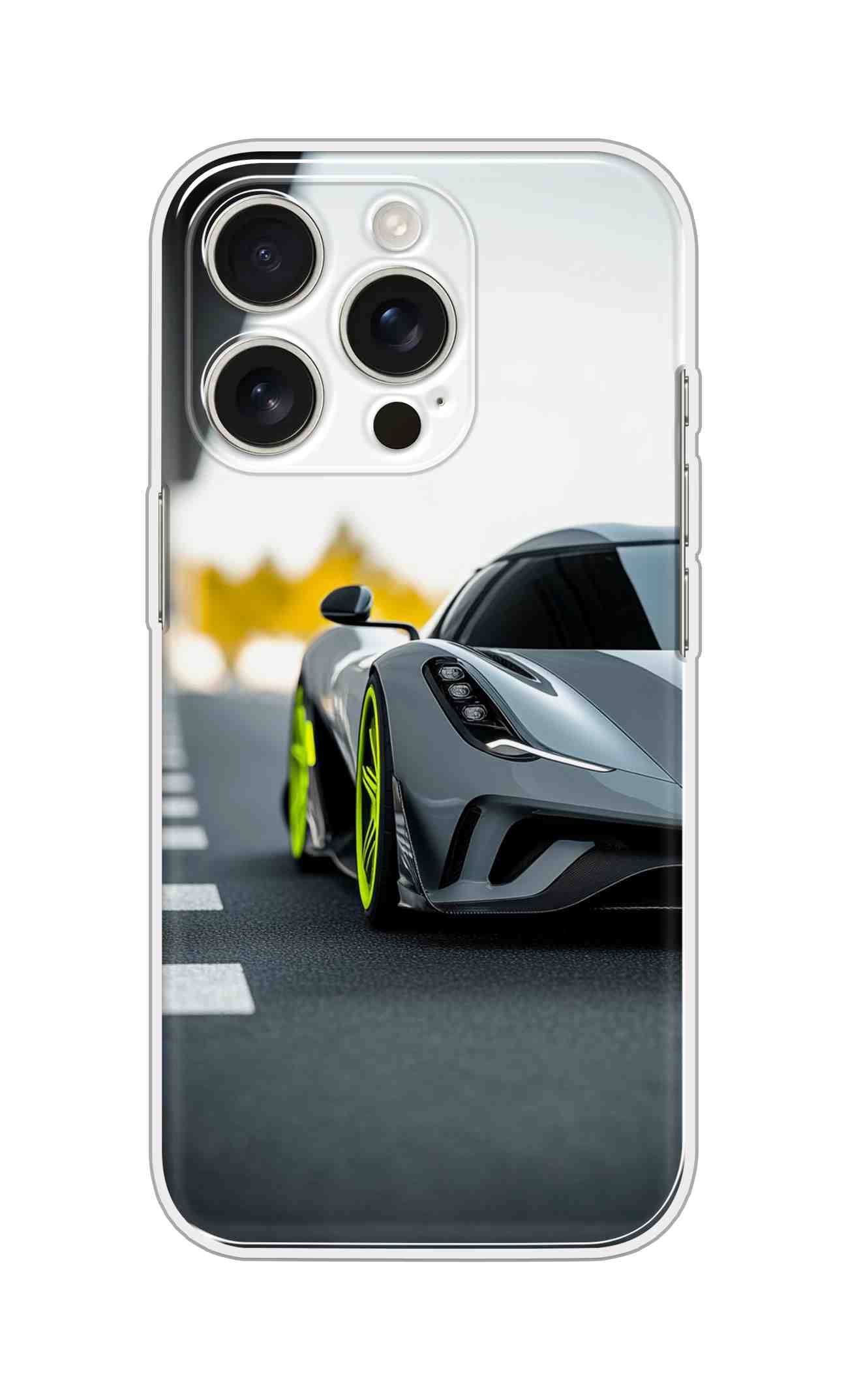 Printed Silicon Cover – Grey Car With Green Tiears Design D16614