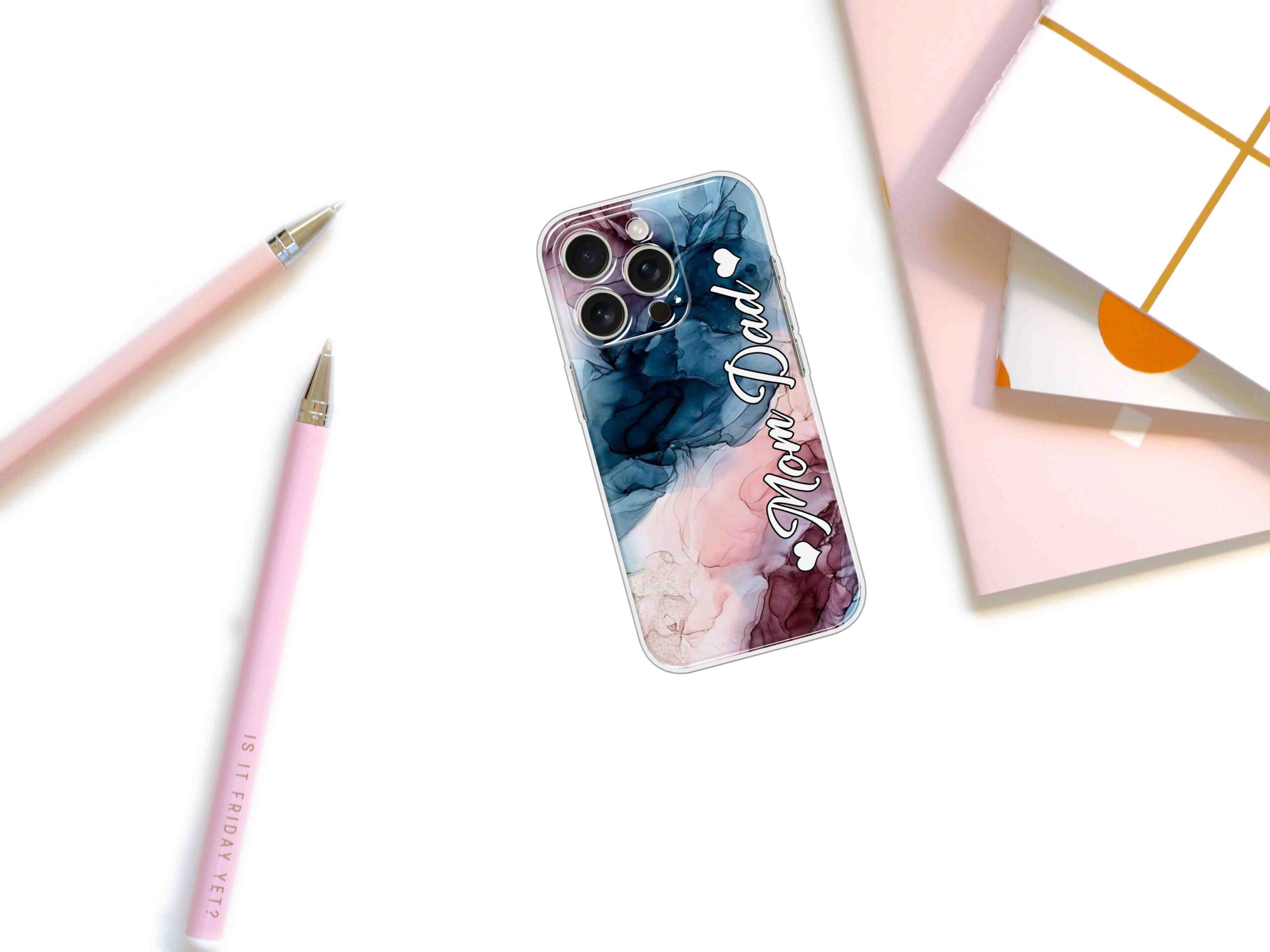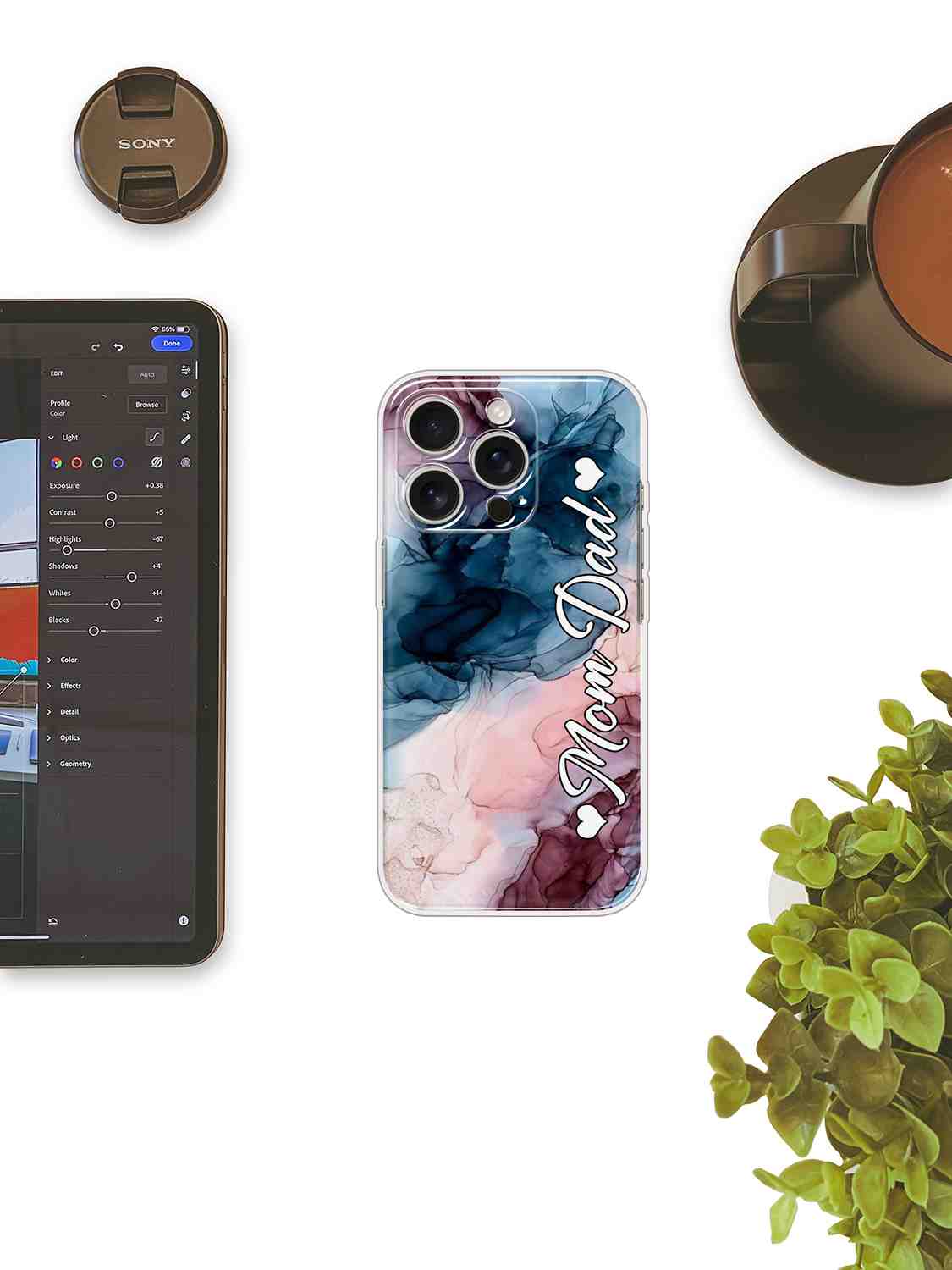 Printed Silicon Cover – Mom Dad On Colourful Marble D16654