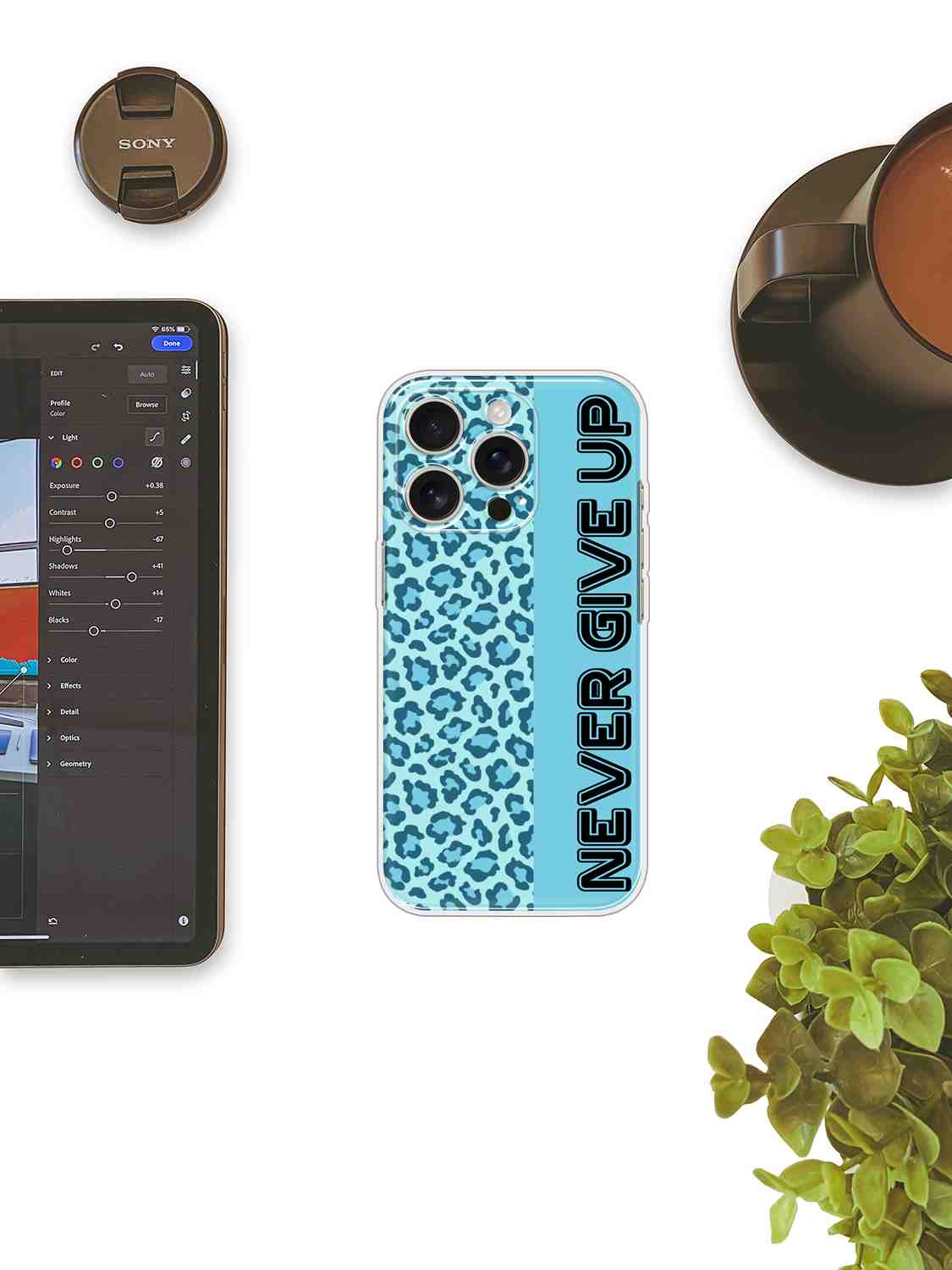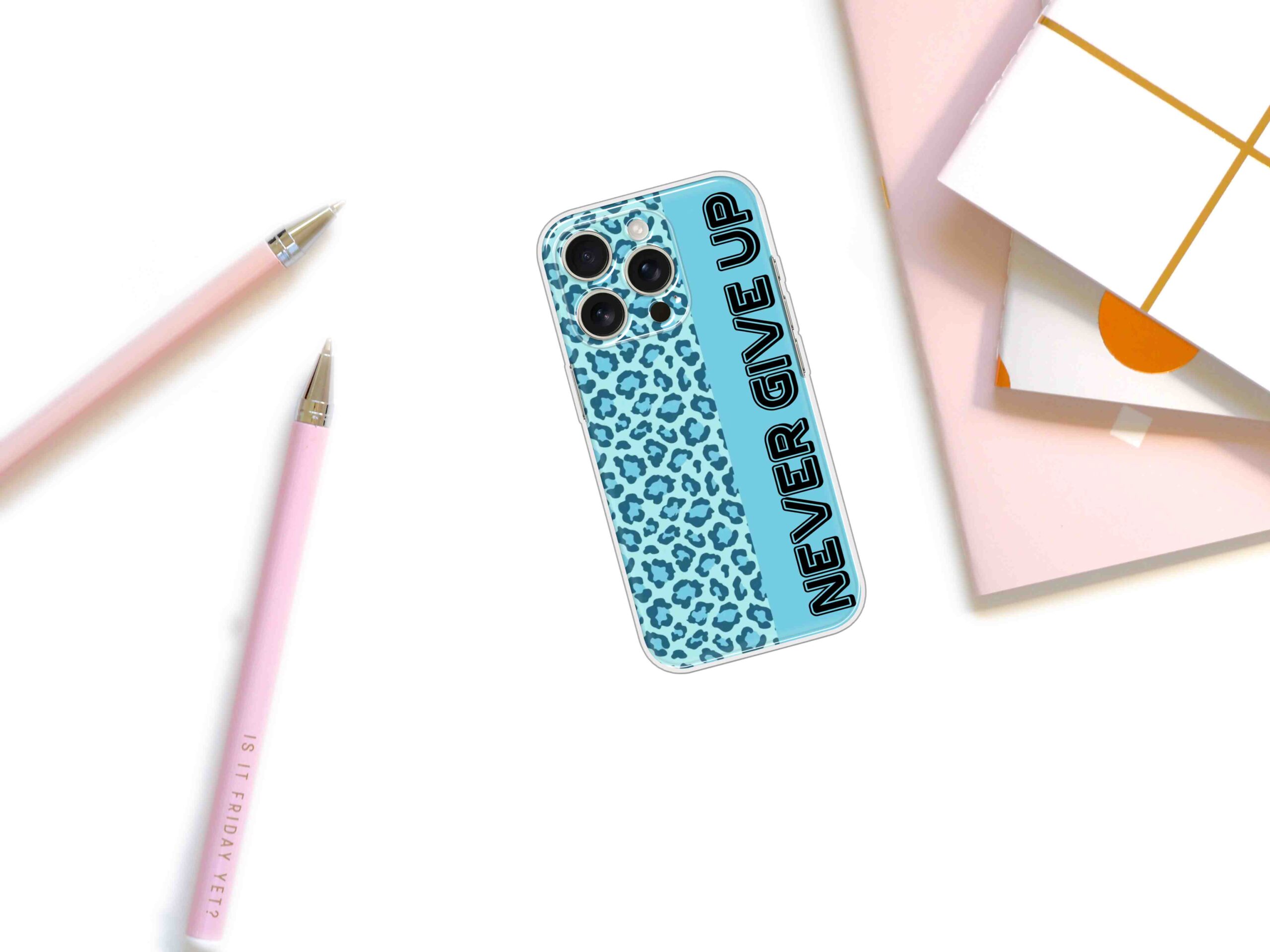 Printed Silicon Cover – Never Give Up On Blue Cheetah Pattern D16748