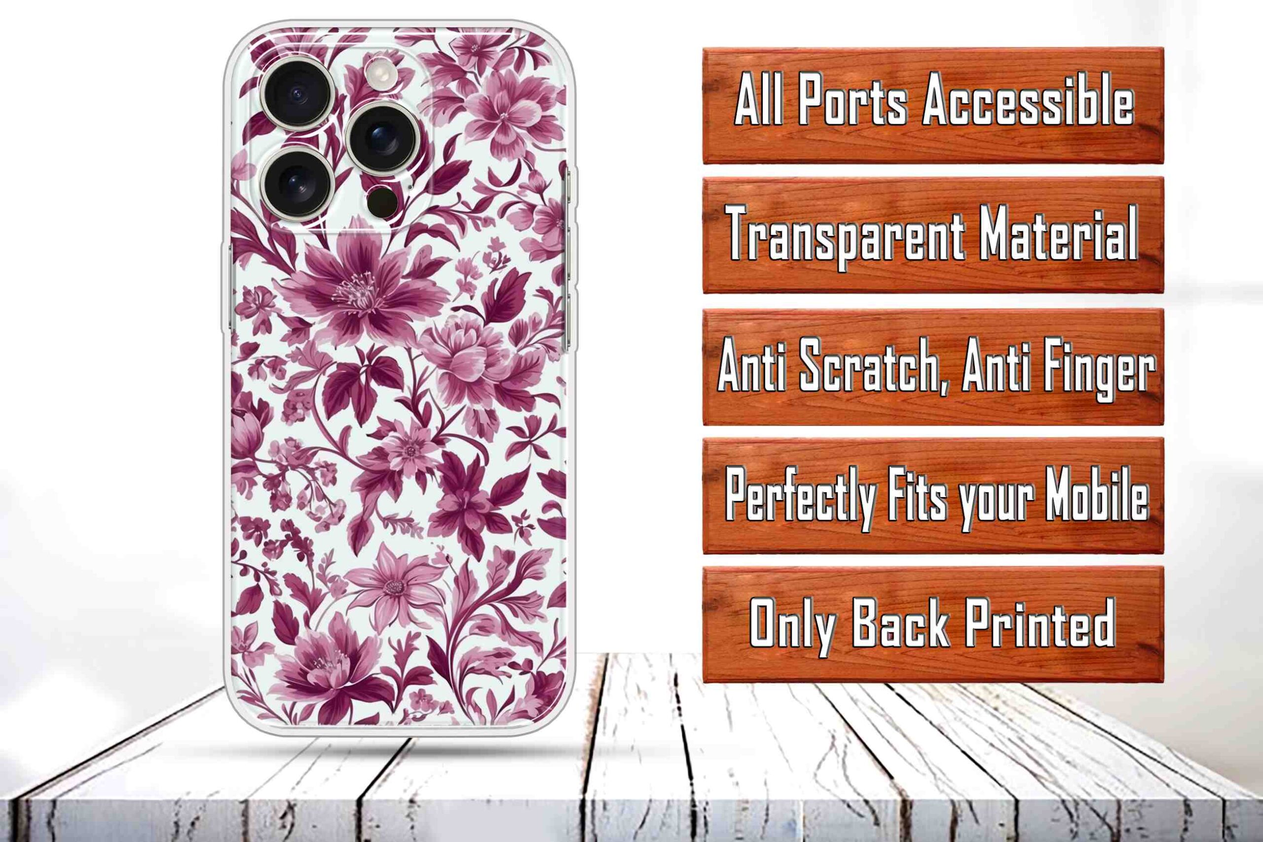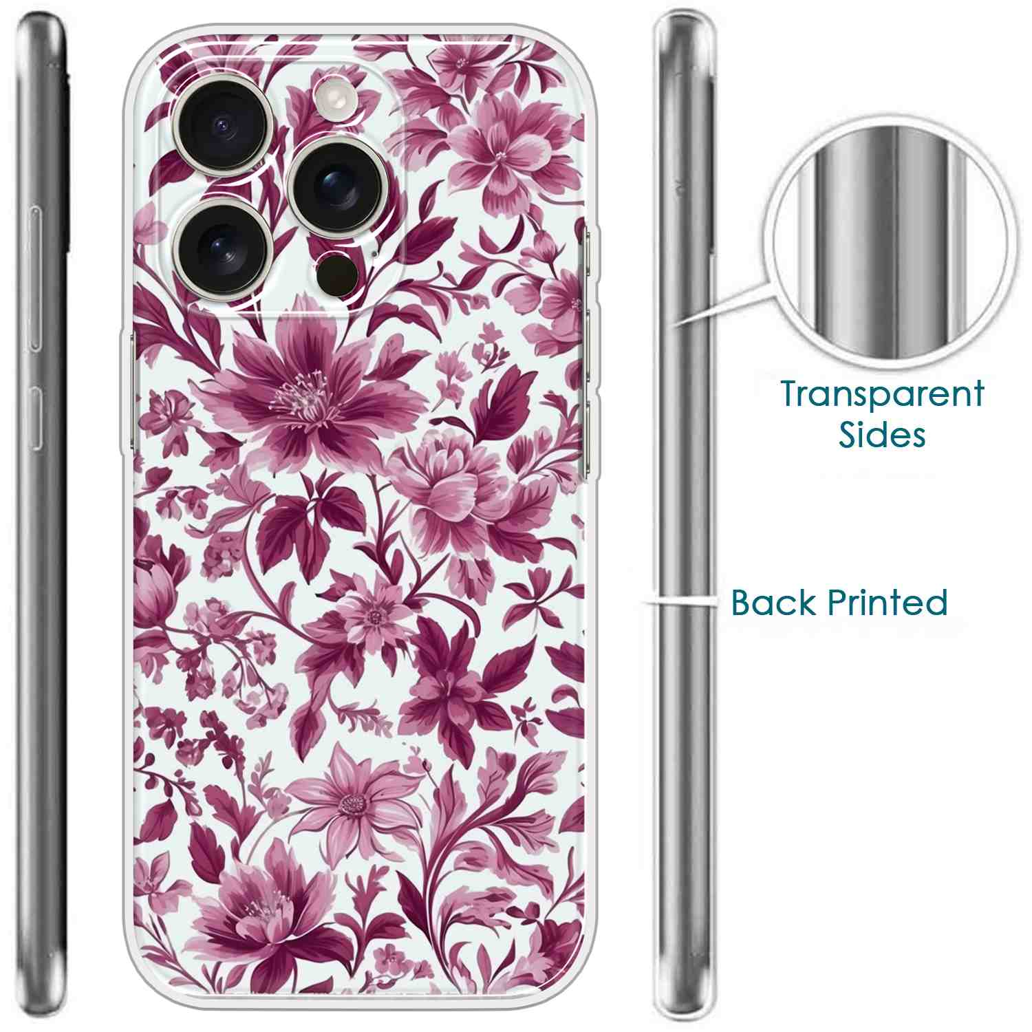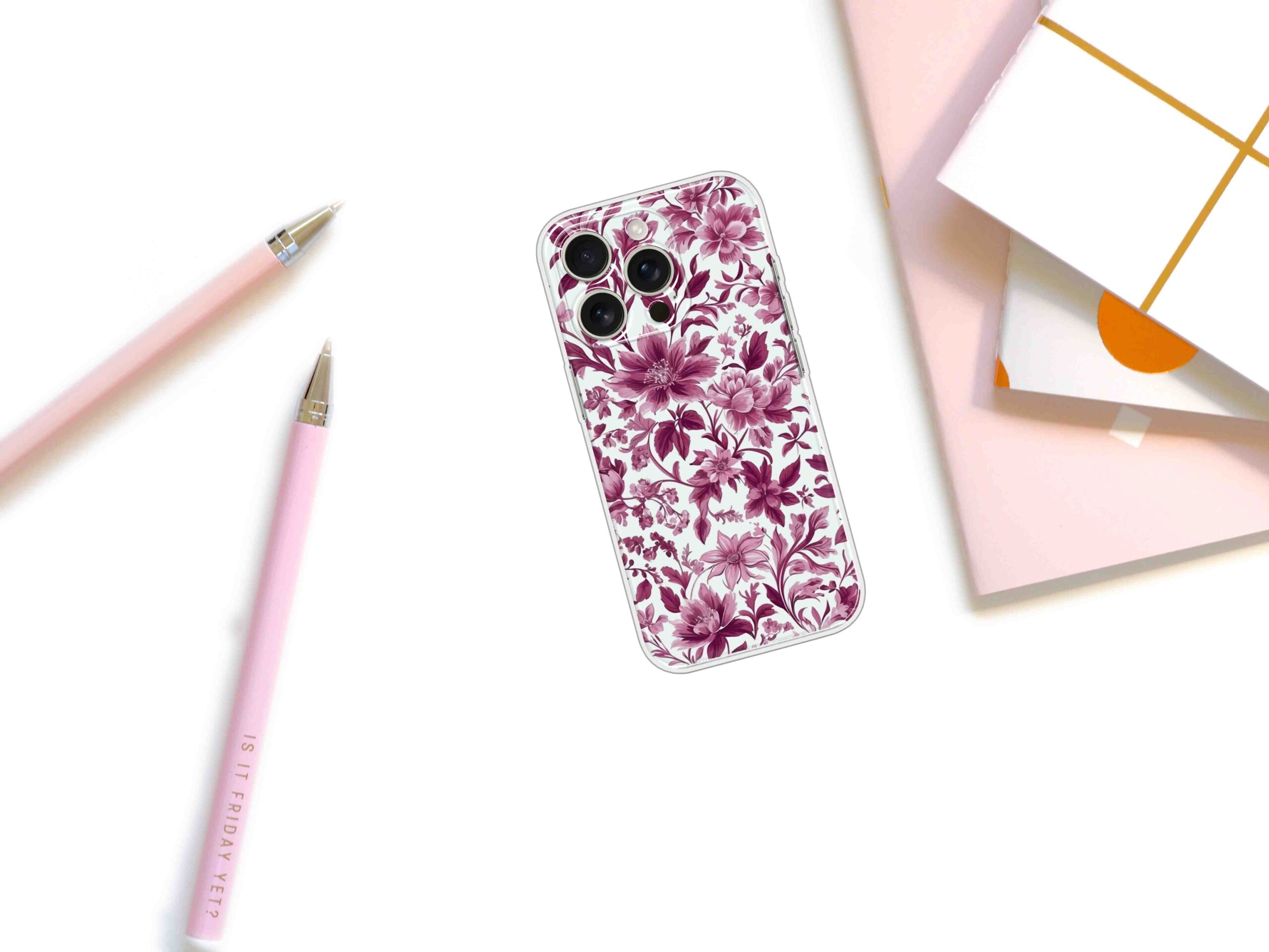 Printed Silicon Cover – Pink Floral Design D16766