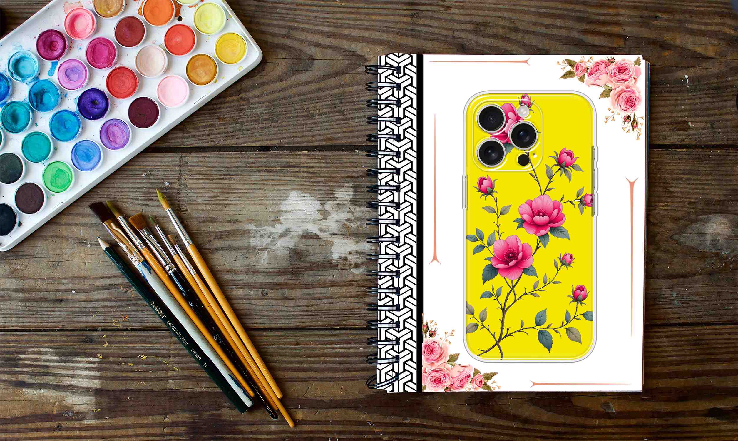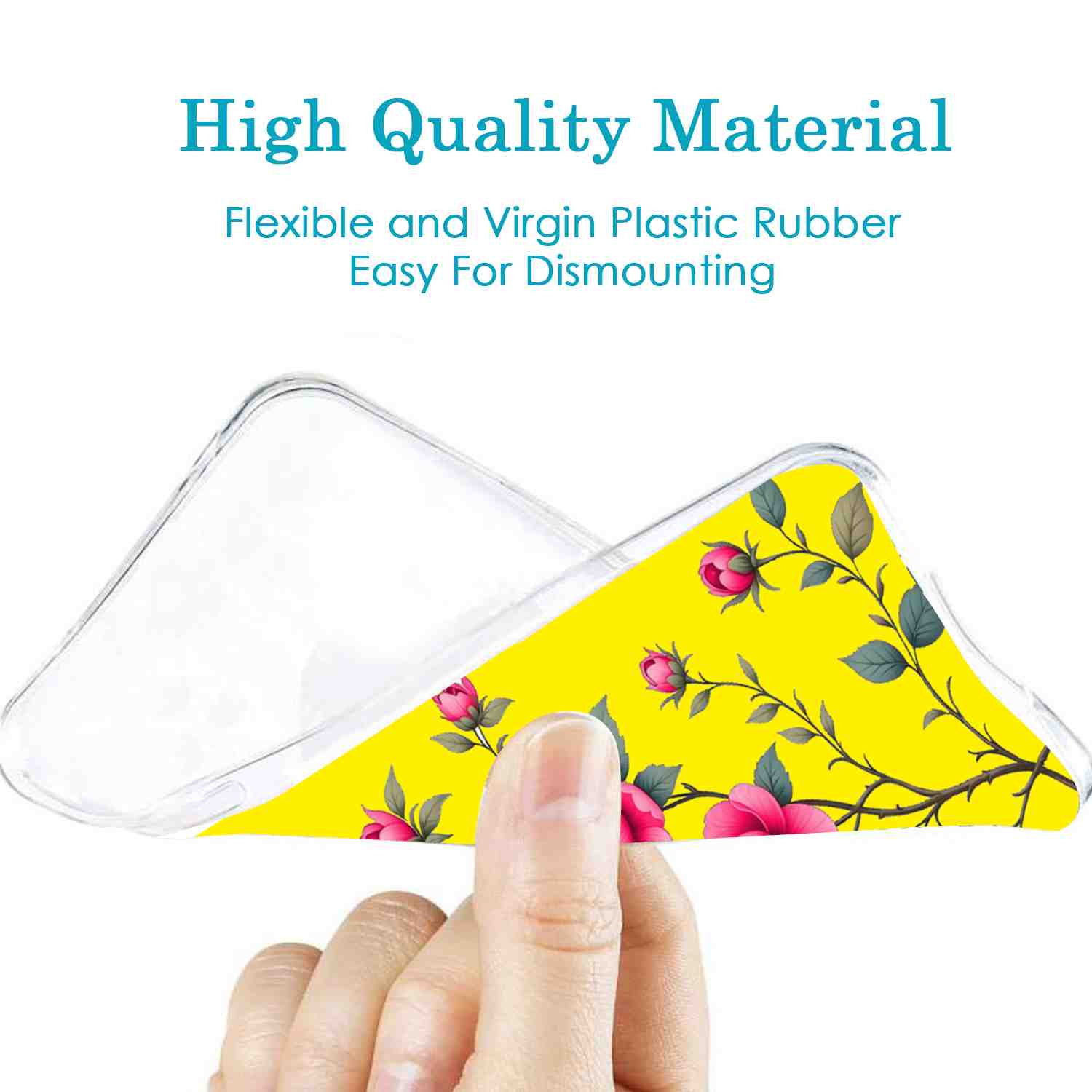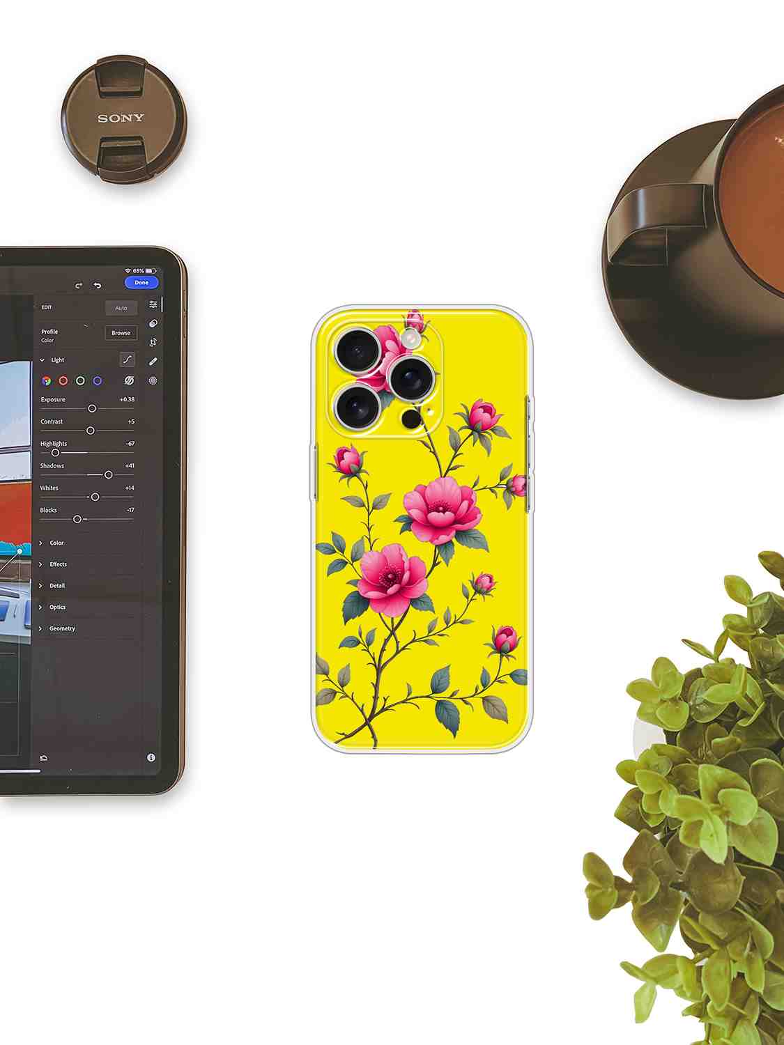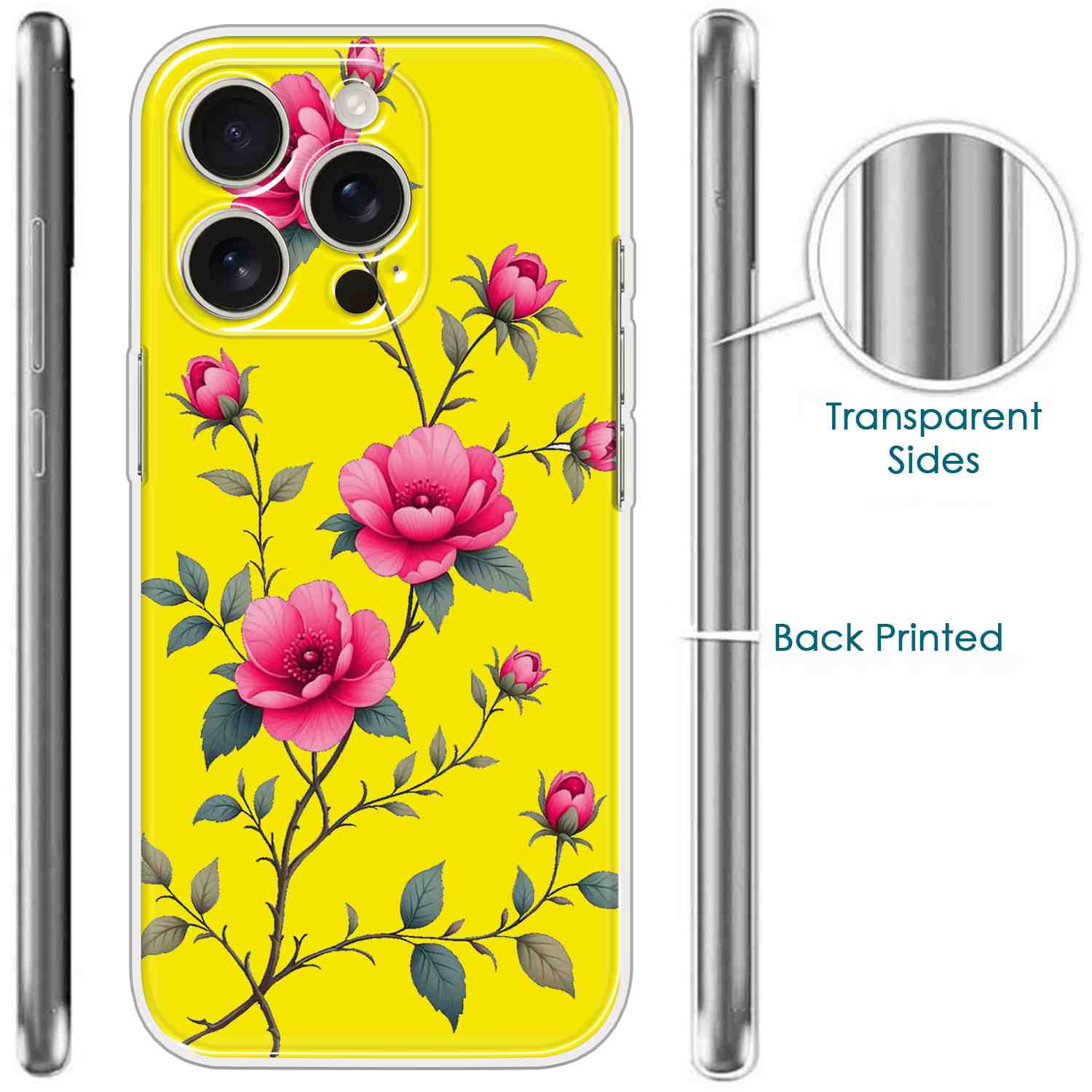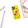 Printed Silicon Cover – Pink Flowers On Yellow Back Ground D16740