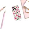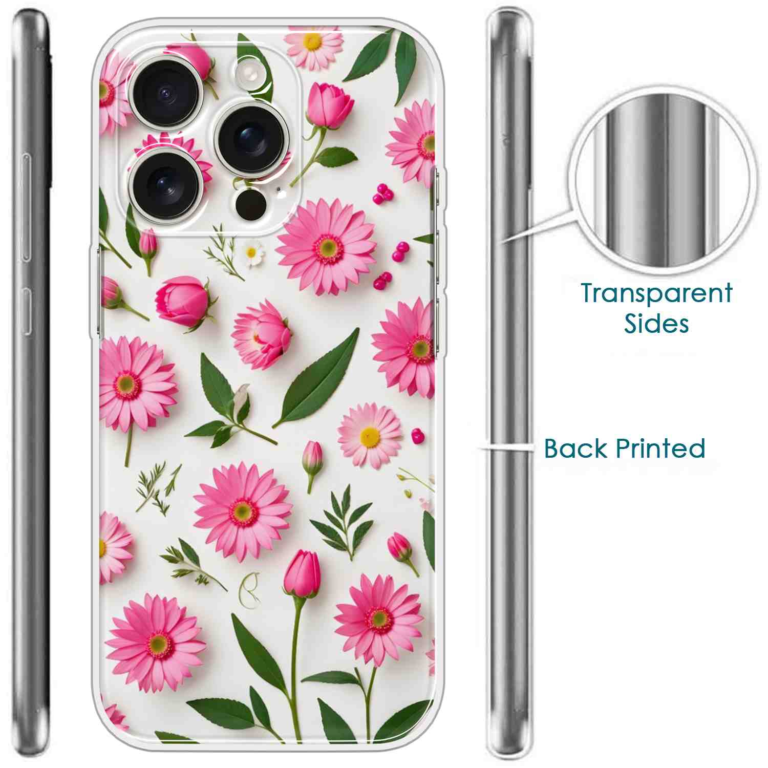 Printed Silicon Cover – Pink Green Leaves Design D16668