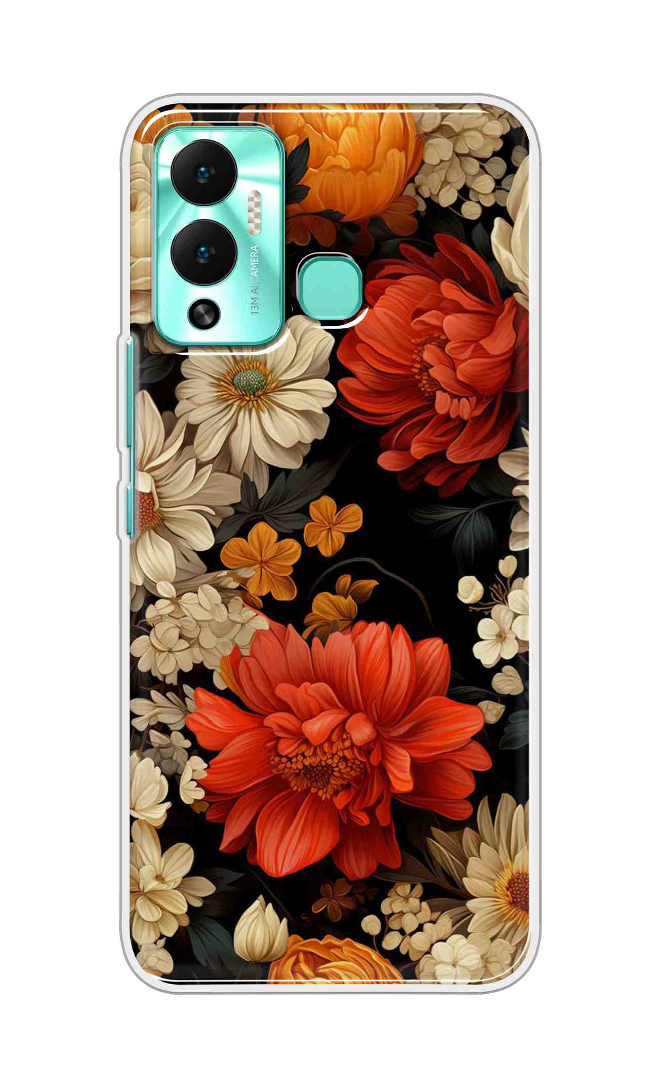 Printed TPU Back Cover For Infinix Hot 12 Play – Bright Orange White Floral D16495