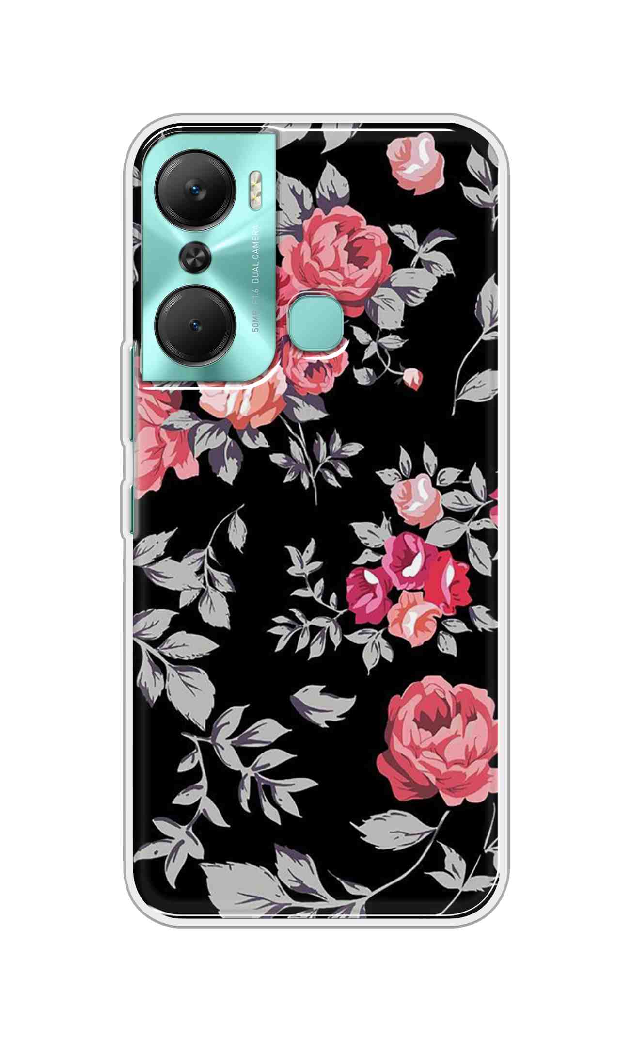 Printed TPU Back Cover For Infinix Hot 12 Pro – Black and Pink Floral D11556