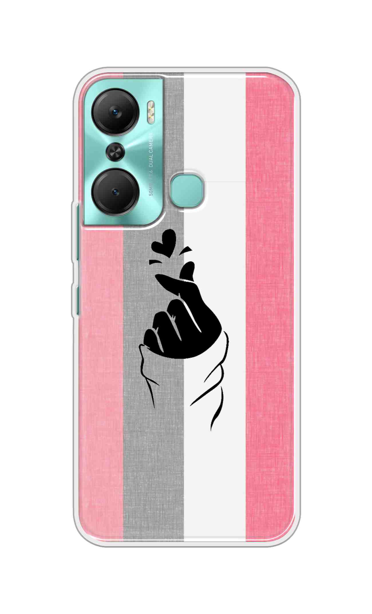 Printed TPU Back Cover For Infinix Hot 12 Pro – Cute Korean Heart in Pink Grey White Stripes Pattern D11894