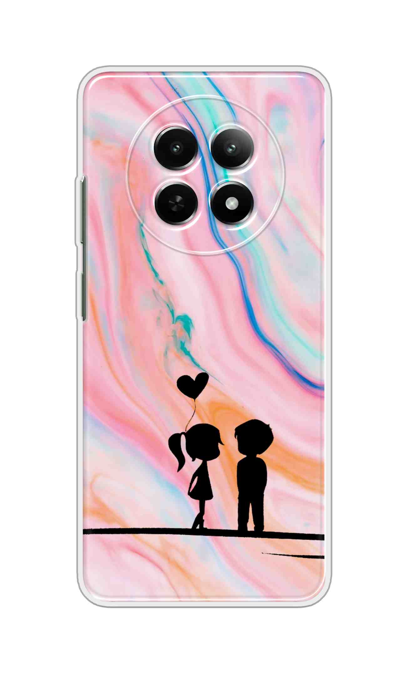 Printed TPU Back Cover For Realme 14 Pro Lite 5G – Cute Girl Boy Heart in Color Marble Pattern D11900