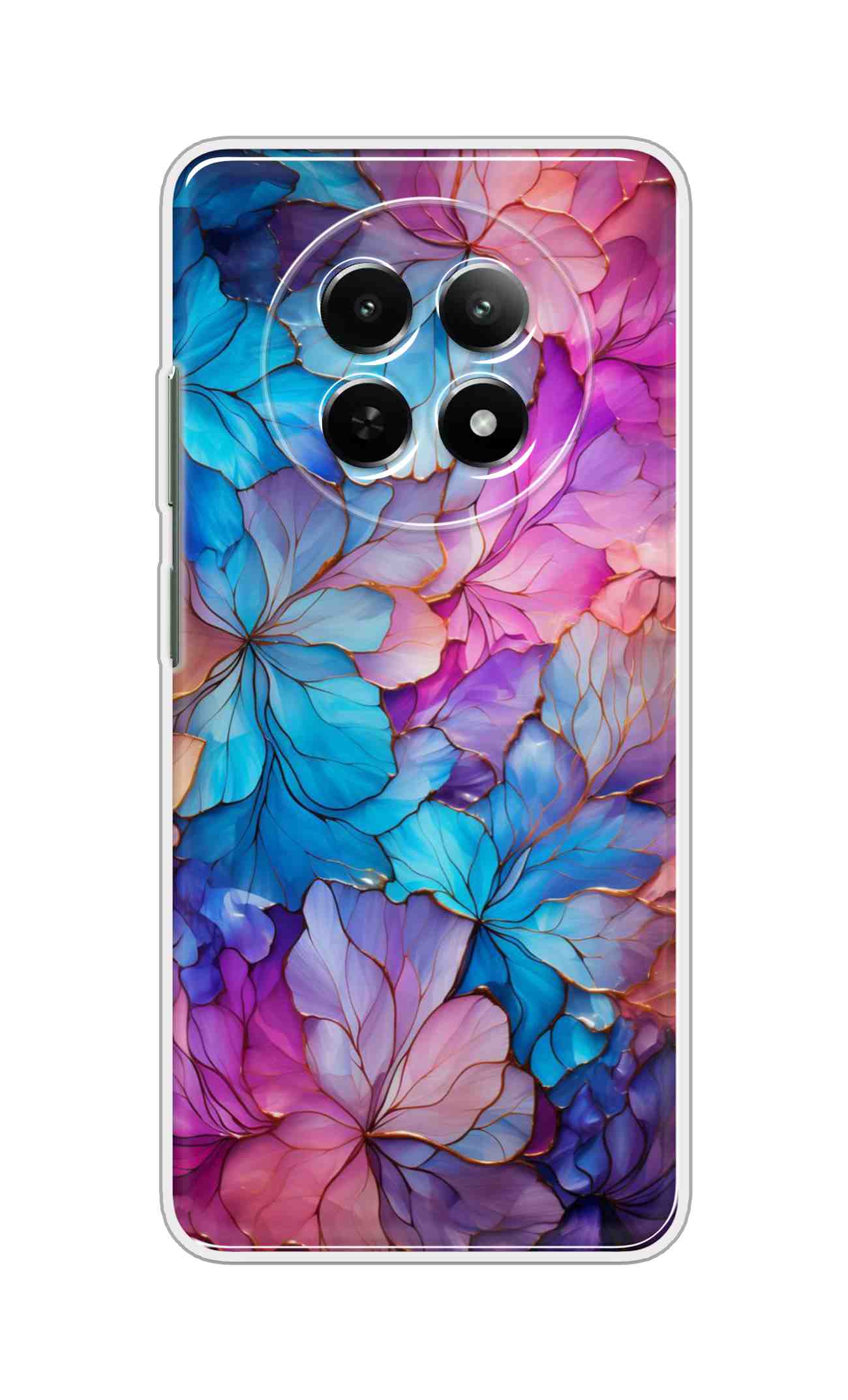 Printed TPU Back Cover For Realme 14 Pro Lite 5G – Multicolor Blue Pink Floral D16480