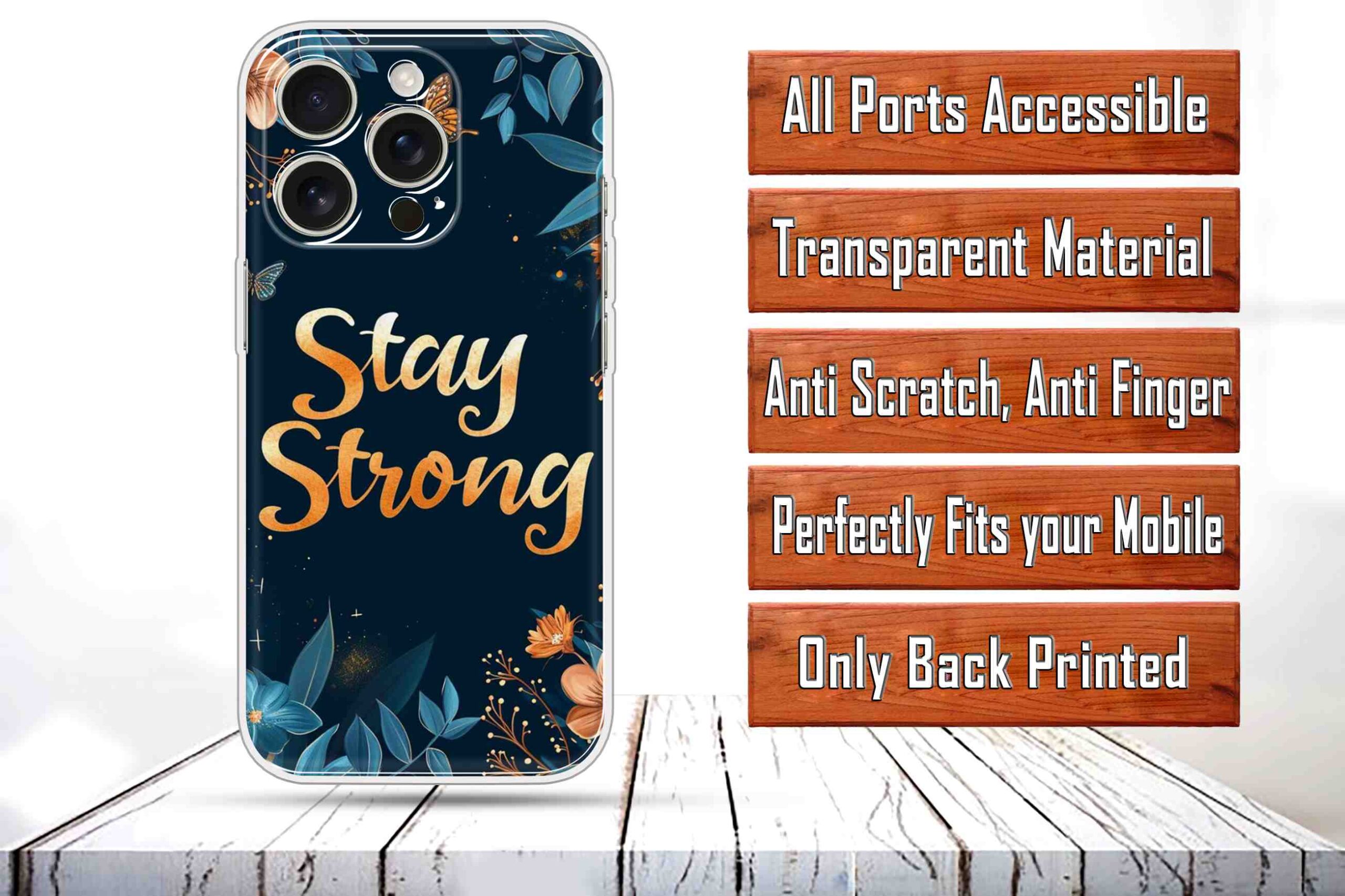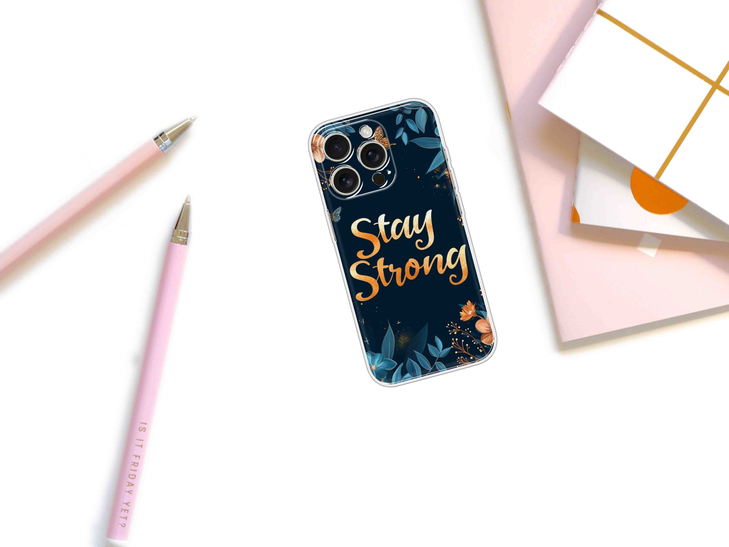 Printed Silicon Cover – Stay Strong In Flowers Design D16514