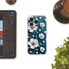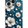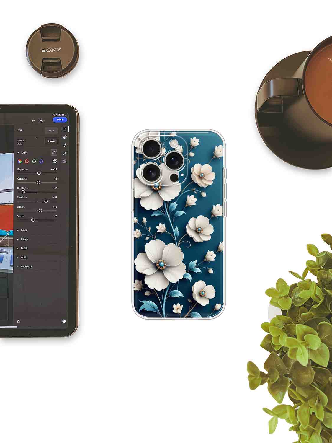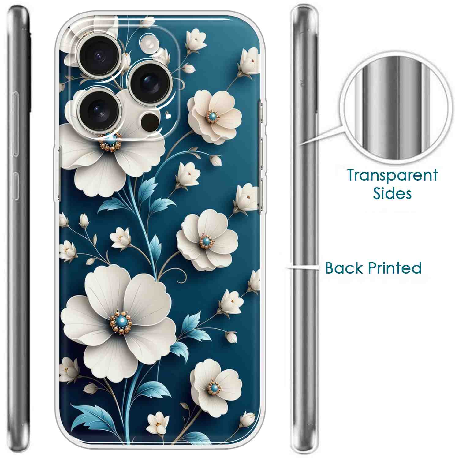 Printed Silicon Cover – White Flowers Design In Blue D16613